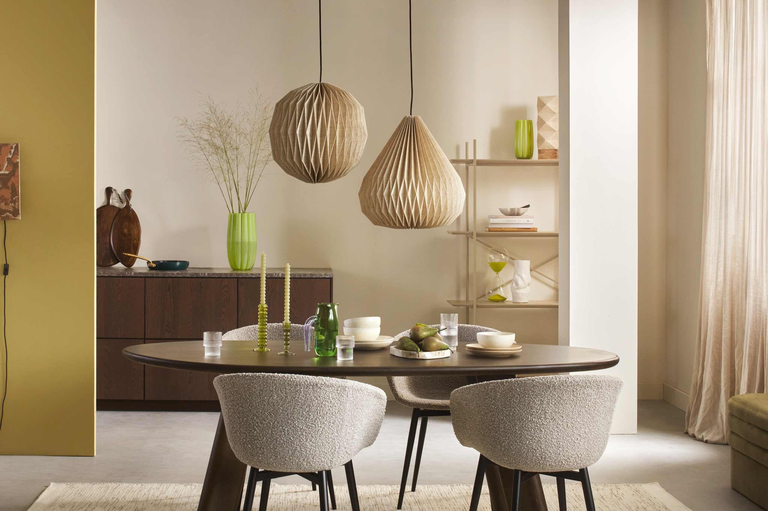 Richt je eetkamer in volgens de trends in kleuren, materialen en stijlen.