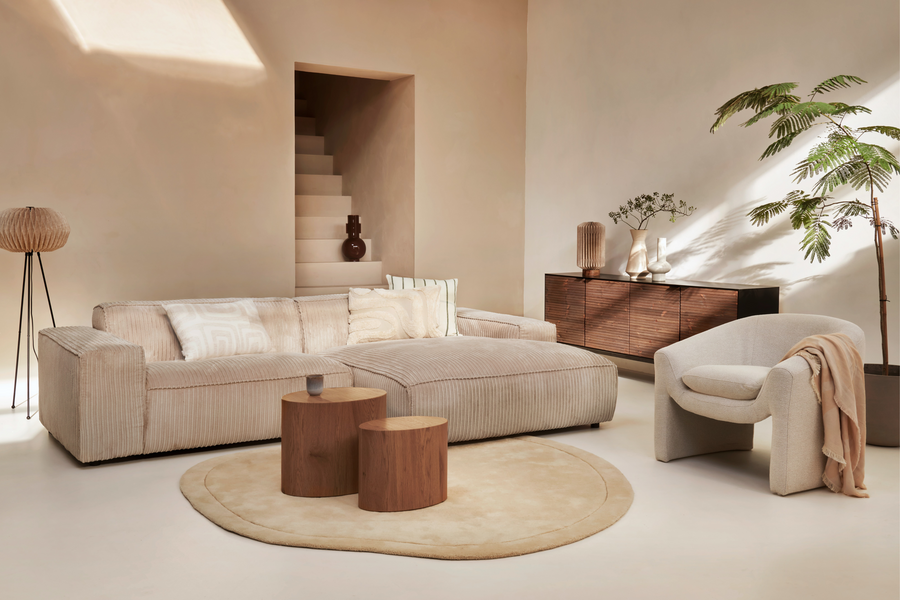 by fonQ Plume 3-zits Hoekbank met Chaise Longue Links - Chenille - Beige€ 1.499,- € 1.999,- (originele prijs) -