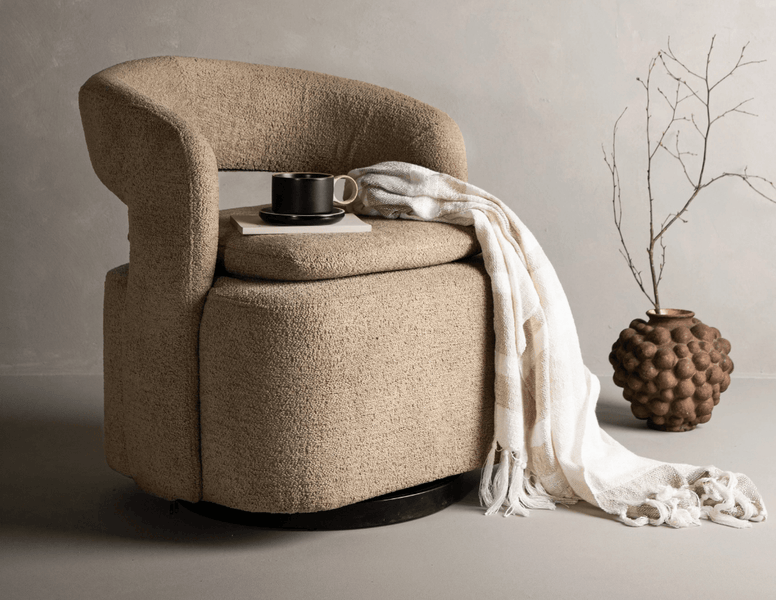 Warme houttinten, klei- en karameltinten en zachte vormen zorgen samen voor een rustgevend interieur met karakter. Natuurlijke materialen, ronde lijnen en warme kleuren brengen sfeer zonder dat het zwaar wordt....