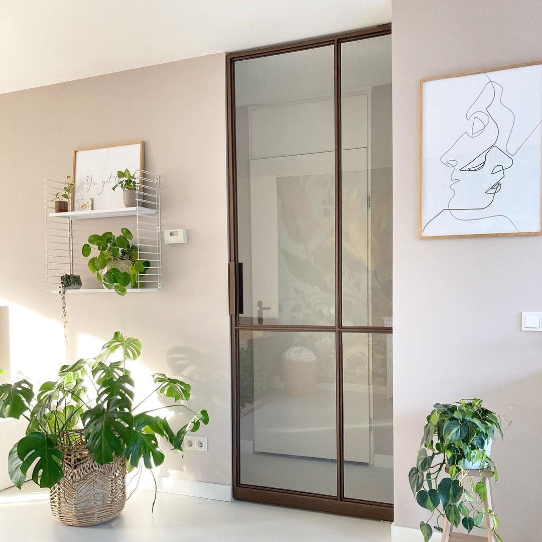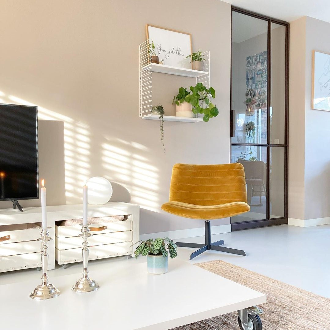 Een rustige Scandi basis met zonnige kleuren wordt opgevuld met unieke eyecatchers, zoals het foto behang met botanische print. Sinds kort is Susanne ook helemaal verliefd op de stalen deur in koperen kleur. “De stalen deur glinstert prachtig als de zon er op schijnt!” aldus Susanne. Merken als Zuiver, HKliving en Bloomingville zijn favoriet, hiervoor heeft Susanne altijd wel een plekje in huis!