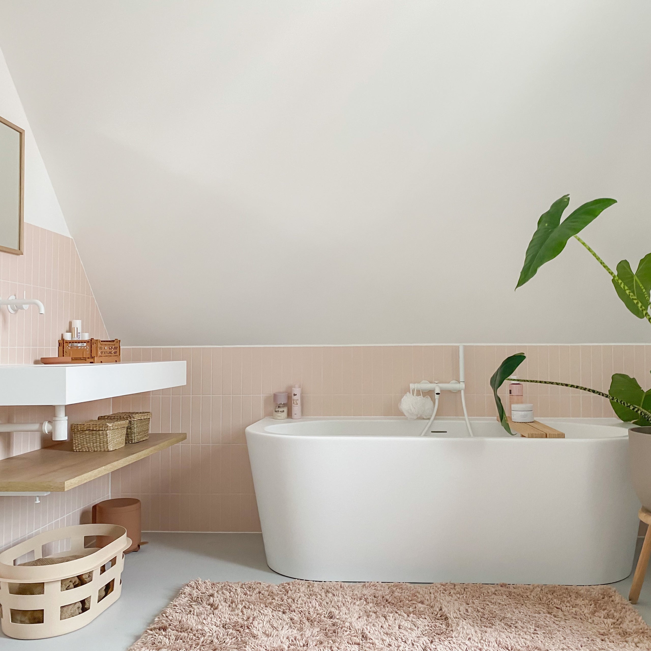 Minimalisme is in dit huis één van de belangrijkste pijlers, maar warmte en gezelligheid vindt Debbie ook heel belangrijk in hun familiehuis. “De houten latjeswand van akoestische panelen bij de eethoek is vanuit alle hoeken van de begane grond zichtbaar: dat maakt het huis sfeervol en een echte eyecatcher.” De lattenwand is niet de enige eyecatcher in het huis van Debbie en haar gezin. Een ensuite badkamer is al om van te dromen, maar Debbie doet er nog een schepje bovenop: grenzend aan hun slaapkamer hebben ze een roze ensuite badkamer gerealiseerd. Vanuit het bed hebben ze nu zicht op een prachtige badkamer met een roze touch. "Het voelt iedere dag weer als een hotel!" En dat snappen we... Wij zijn fan!