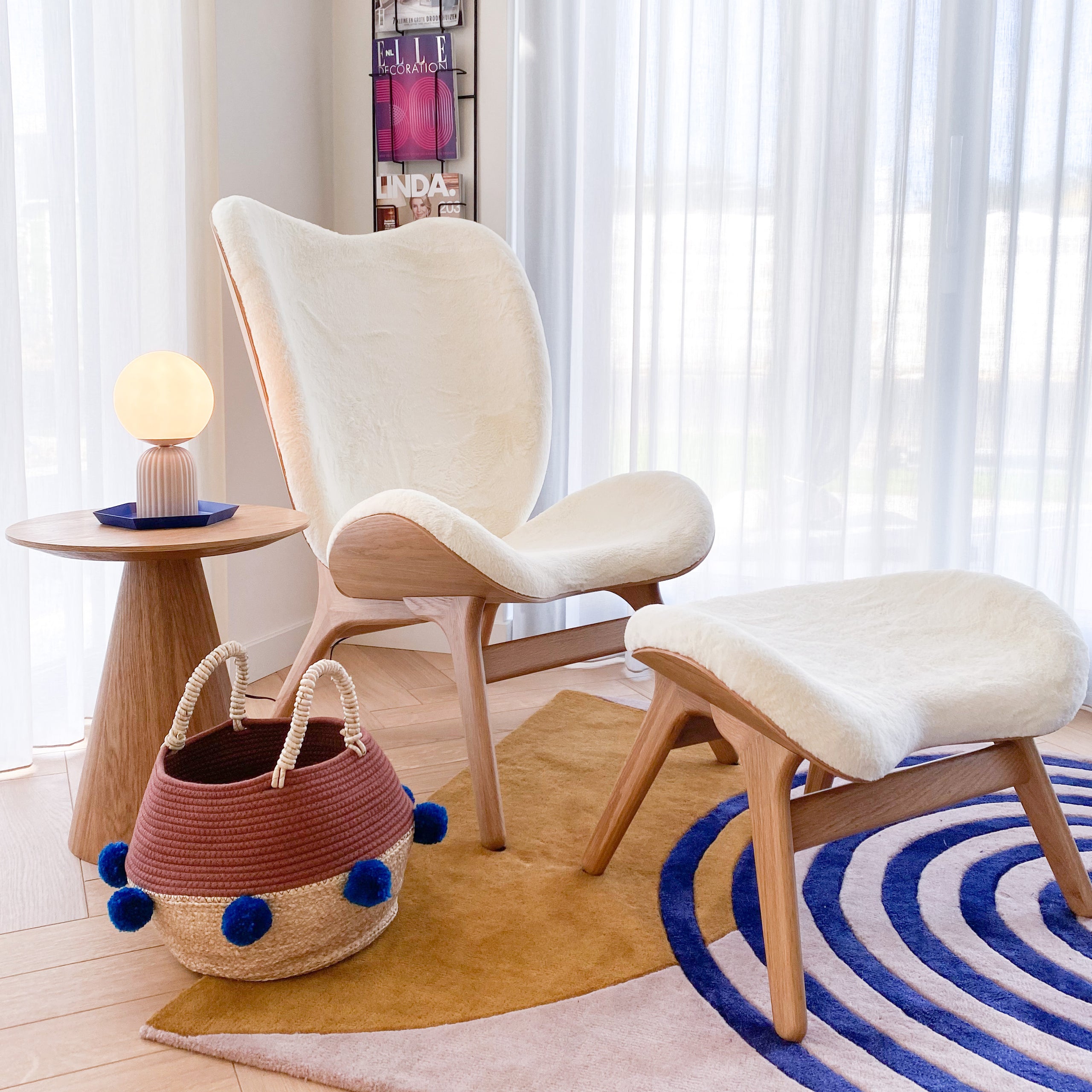 Om de rust in haar kleurrijke woning te bewaren, heeft Suzanne een moodboard gemaakt. “Ik blijf altijd trouw aan de basis van mijn interieurontwerp. De kleuren, vormen en structuren op mijn moodboard verwerk ik in iedere ruimte. Bij alle nieuwe interieurkeuzes die ik maak, grijp ik daarop terug.” Suzanne mixt graag Scandinavische designklassiekers met opvallende items. Zo creëert ze met de moderne fauteuil van Umage een gezellig zithoekje en staat de &k amsterdam Marshmallow bijzettafel als pronkstuk in de kamer.