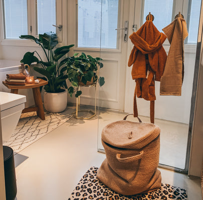 Ellis ten Heuvel, eigenares van webshop 'The Wild Babes' en dagelijks actief op haar Instagram, woont samen met vriend Remi en zoontje Louie in Amsterdam. Tijdens haar zwangerschap zijn ze verhuisd naar een groter huis. Door een aantal zwangerschapskwaaltjes hebben zij het huis enkel ingericht, maar ontbreekt de gewenste finishing touch nog. Vooral de badkamer is een doorn in het oog: wit, strak en vooral praktisch. Daarom ging ze aan de slag met een aantal leuke accessoires en gaf haar badkamer een bohemian look. Laat je inspireren door de bohemian badkamer make-over van Ellis!