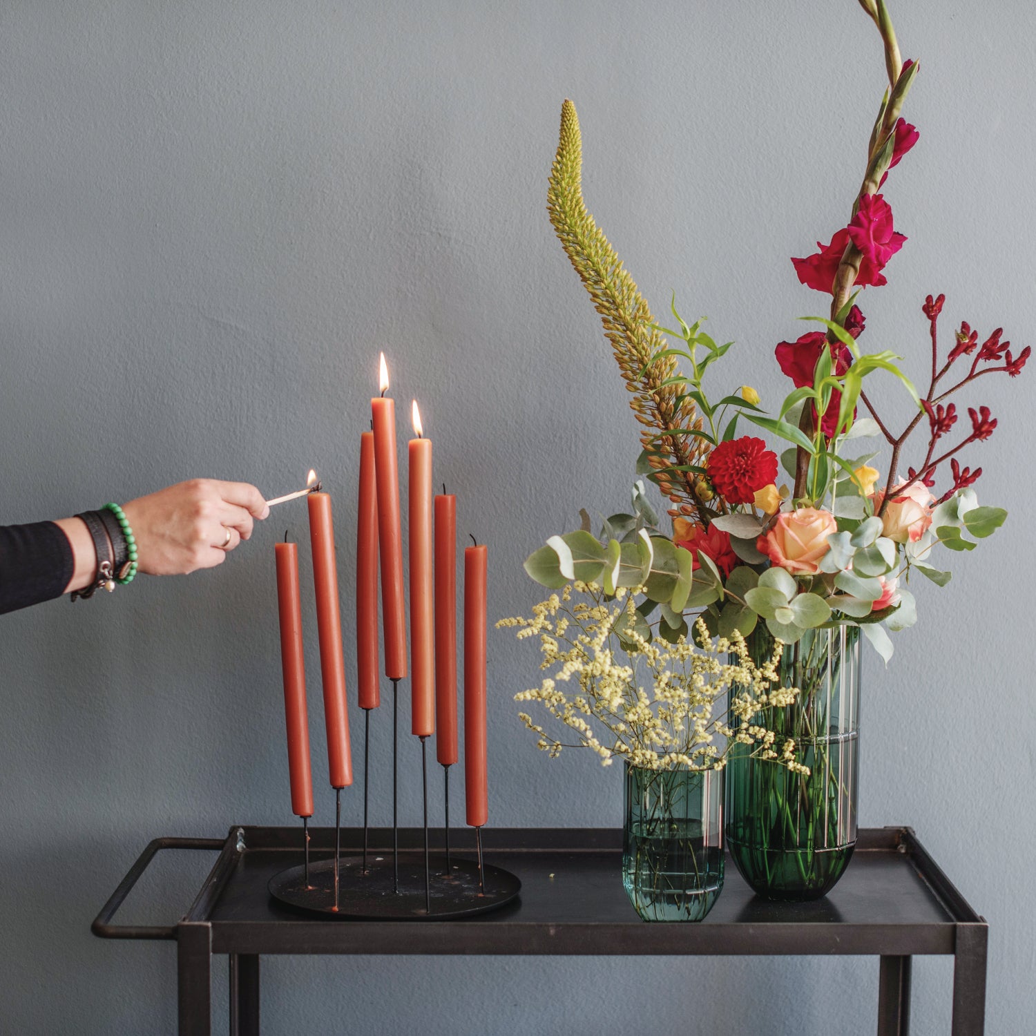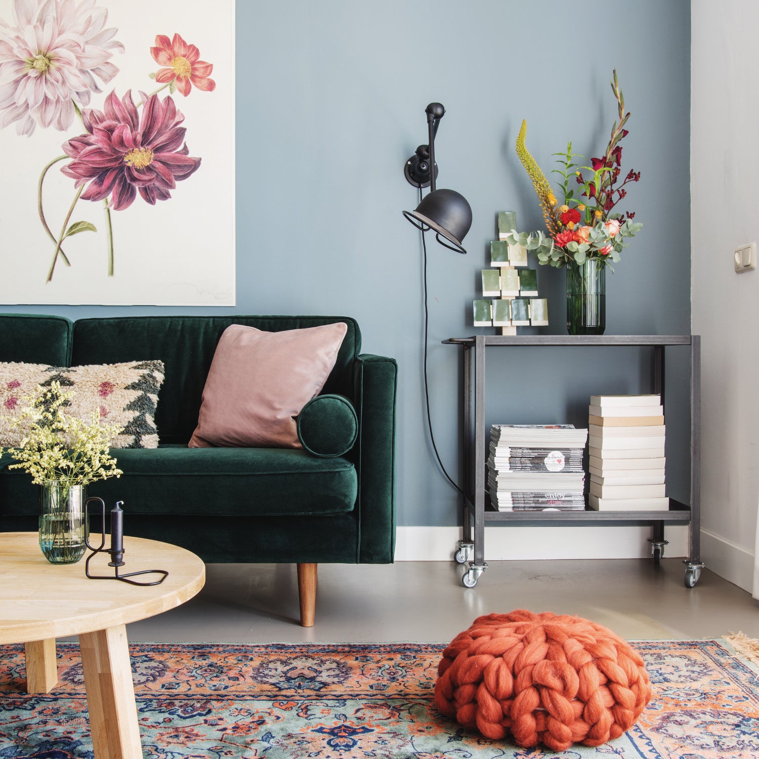 Ondanks dat Lisanne haar woonstijl niet in één woord kan omschrijven, heeft zij qua kleurgebruik wel echt een eigen stijl. Ze is vooral fan van groen, blauw, bordeauxrood en de laatste tijd voegt ze daar veel perzikkleurige accenten aan toe. De diepe kleuren passen perfect bij de herfst, haar favoriete seizoen. Warm en cosy!