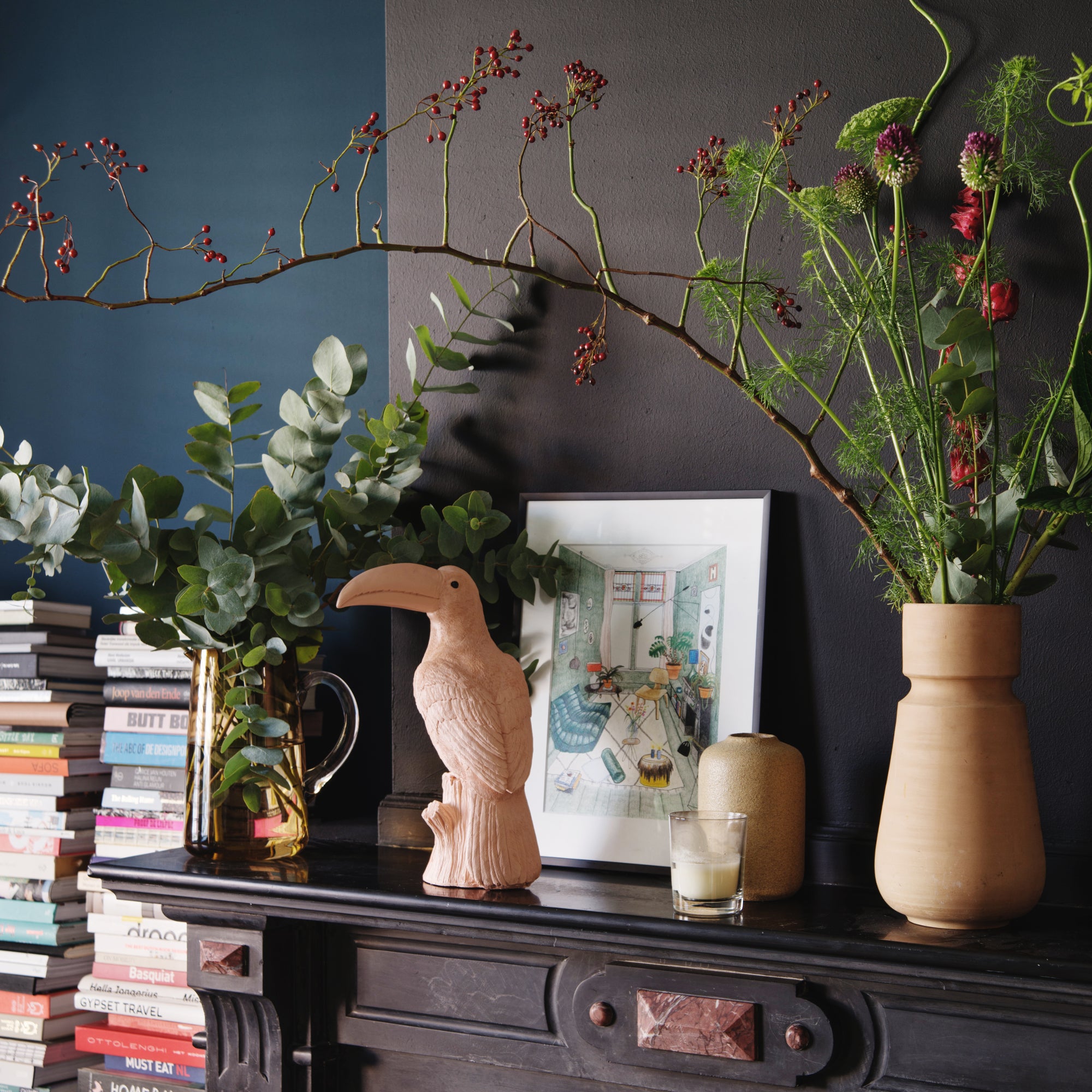 Naast kleur staat Theo-Bert bekend om zijn verzamelwoede. Hij heeft misschien meer woonaccessoires dan de gemiddelde Nederlander, toch gelooft hij dat je met elk budget iets leuks kunt maken. “Bij mij thuis vind je veel stillevens en ik vind het leuk om te wisselen. Met de spullen die je hebt, kun je altijd wel wat veranderen. Voor mij is het verschil al groot als ik twee items ergens vandaan pak en combineer met hetgeen dat er al staat.”