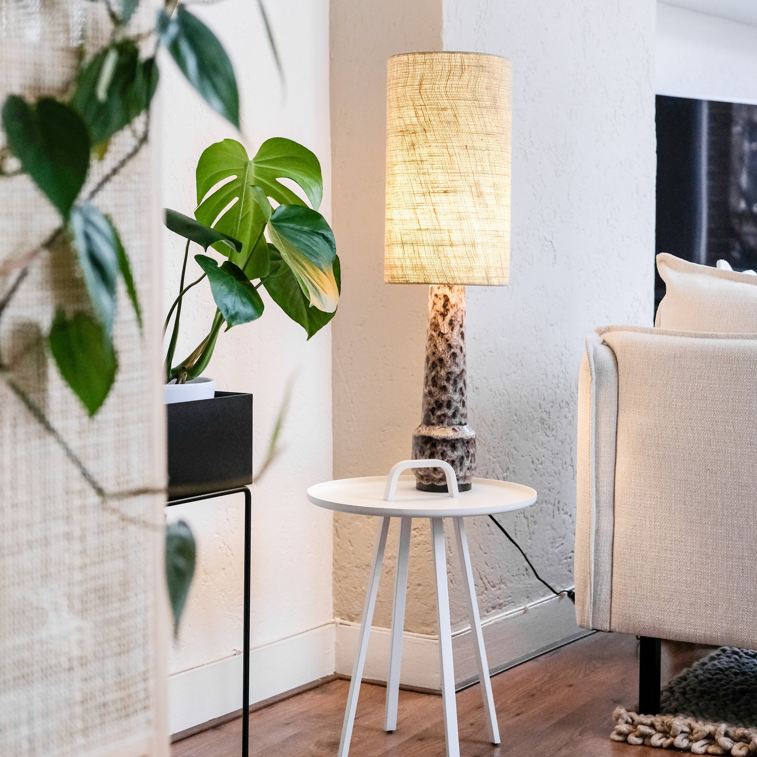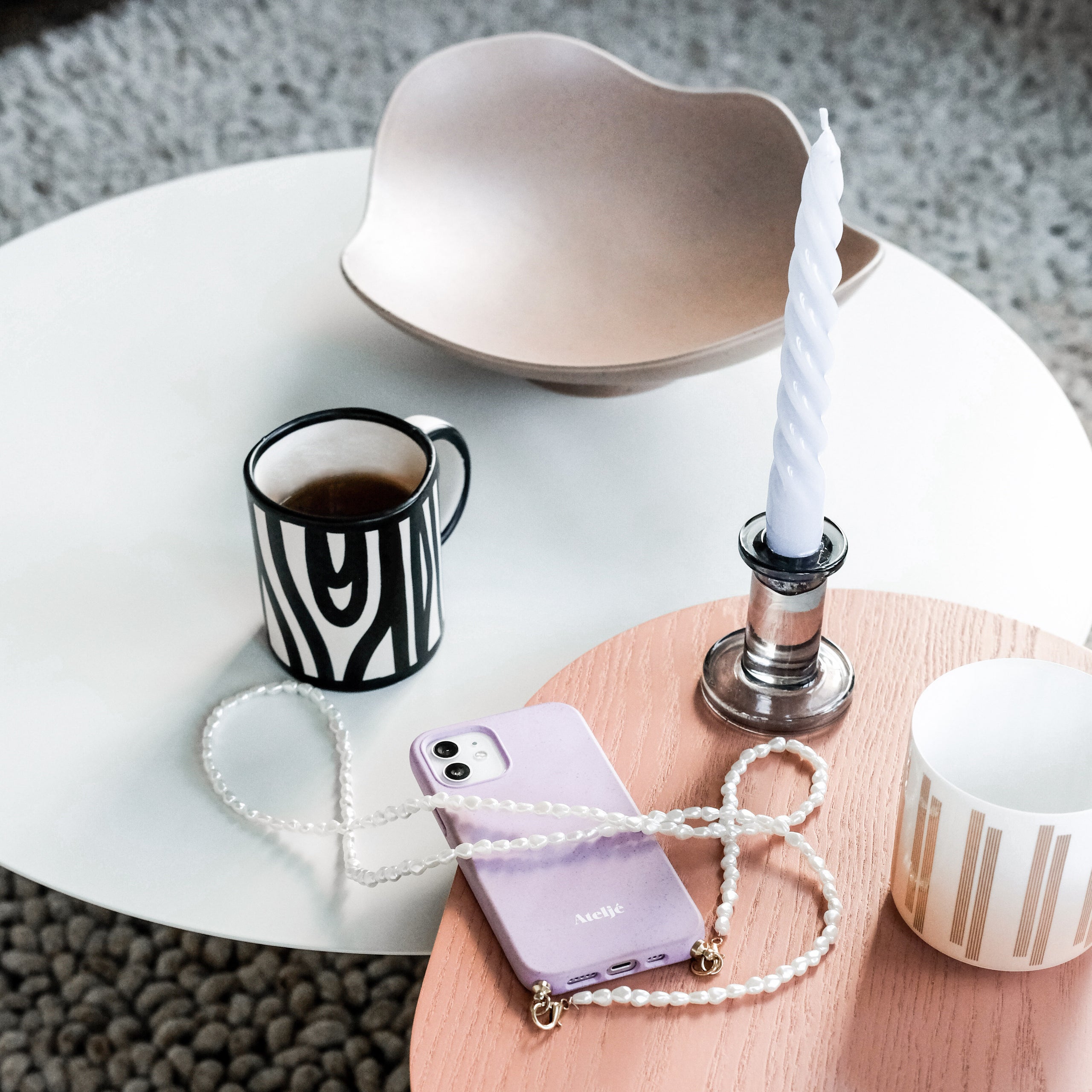 De bank staat dwars in de kamer waardoor je fijn wegkijkt over het centrum van Den Bosch. Ook breekt het de ruimte in meerdere gezellige hoekjes; van coffee corner tot eetkamer. Kim heeft gekozen voor meubelstukken die op pootjes staan, waardoor ze een ruimtelijk effect creert en de woning optimaal benut. Haar slimme indeling maakt dat Kim genoeg ruimte heeft voor sfeervolle woonaccessoires. "Ik vind het belangrijk dat ik blij word van mijn interieur. Een aparte lamp of een lila tafel zorgt ervoor dat ik na een lange dag opgewekt mijn huis binnen stap."