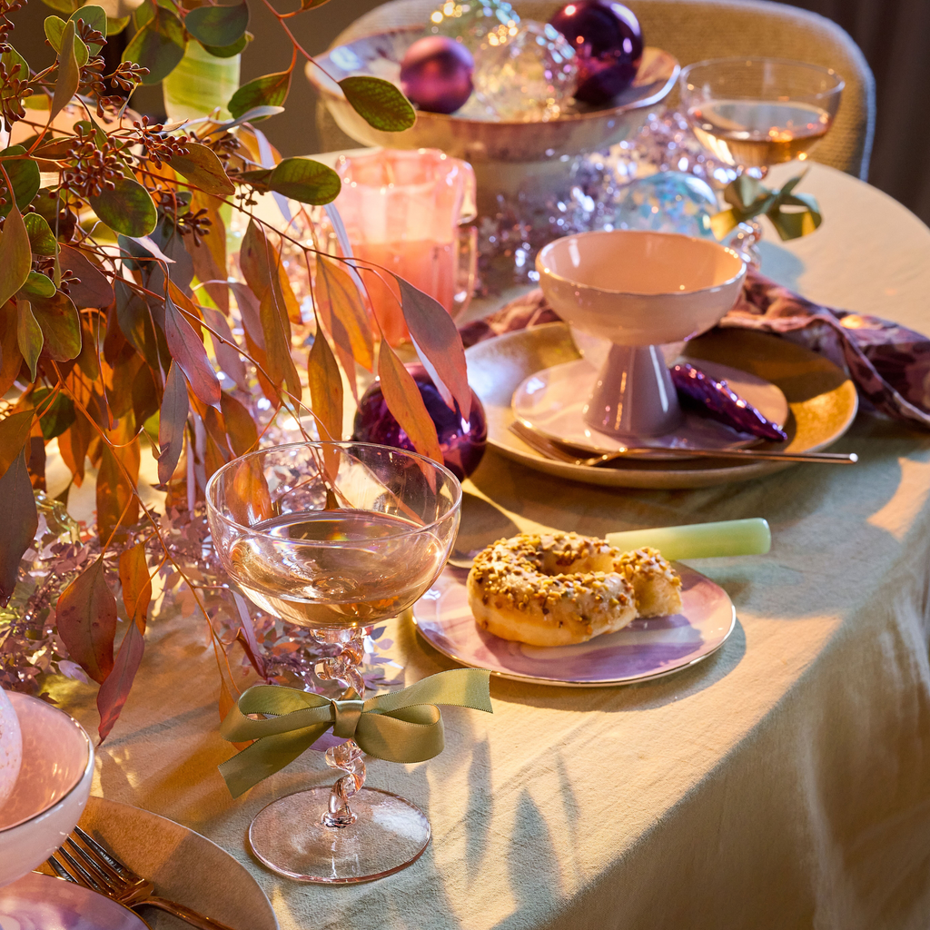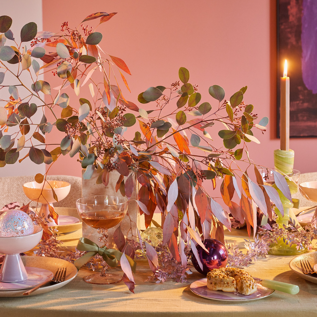 Kies jij deze feestdagen voor een serene en zachte sfeer? Dan is onze balanced aesthetics look precies wat bij je past. Een gentle palette van pastels, lichte materialen en subtiele glans vormt de basis van deze moderne tafellook. Kies voor iridescent accenten die het kaarslicht prachtig vangen. Een beetje sparkle mag tenslotte niet ontbreken tijdens de feestdagen! Met glossy details en frisse, lichte tinten creëer je een luchtige tafel die zowel chique als eigentijds aanvoelt.