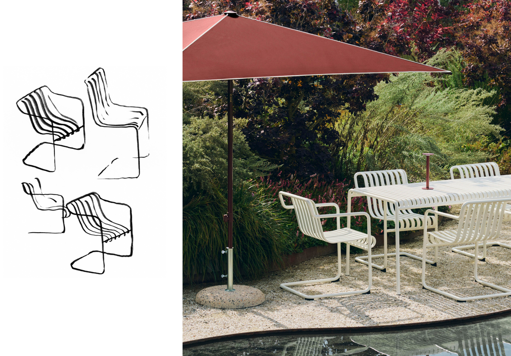 De Palissade-familie krijgt dit voorjaar een uitbreiding met de Palissade Cantilever Collection, ontworpen door Ronan Bouroullec. De collectie behoudt de symmetrische designtaal van het origineel, maar introduceert een lichtere, zwevende constructie. Het frame creëert een subtiele vering, wat zorgt voor extra zitcomfort. De Palissade Cantilever is ontworpen om moeiteloos te integreren in zowel natuurlijke landschappen als stedelijke omgevingen en is geschikt voor ontspannen, dineren en socializen in uiteenlopende buitenruimtes