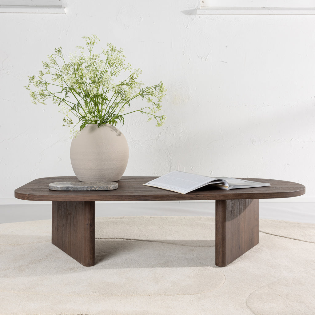 - Ovale salontafel: Een ovale salontafel combineert de kenmerken van ronde en rechthoekige tafels. Gebruik centrale decoraties zoals een grote vaas of een stapel boeken in het midden, en voeg kleinere items toe aan de uiteinden voor een gebalanceerd geheel.