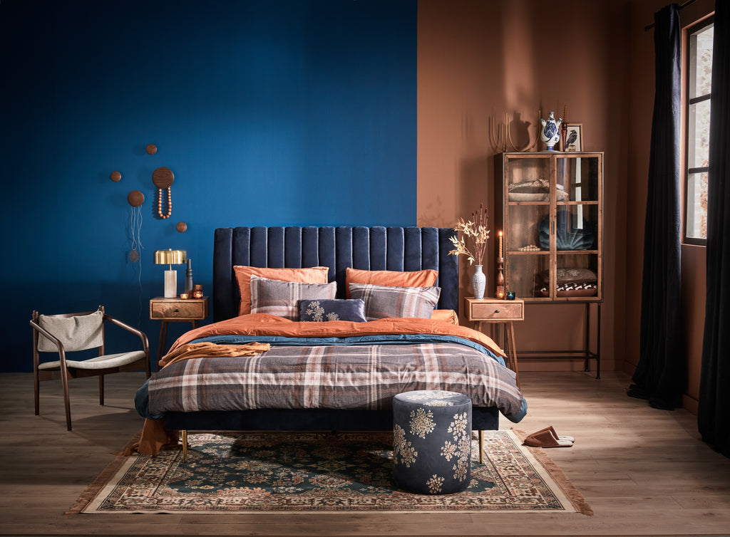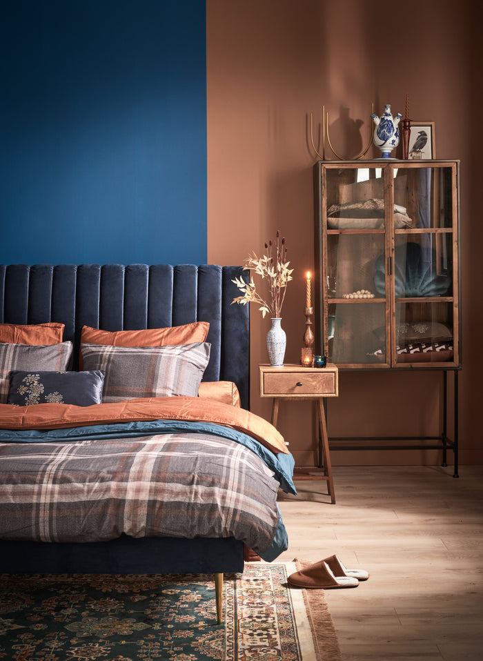 In deze trend zijn warme kleuren een must. Bruin is nu echt terug van weggeweest, zowel in prints als in de materialen. Combineer warme bruintinten met kleuren als okergeel en steenrood voor een fijn en klassiek sfeertje. De moderne twist zit hem in blauwe woonitems: nordic blue en navy geven je interieur een verfrissende look, maar het geheel blijft sfeervol en warm.