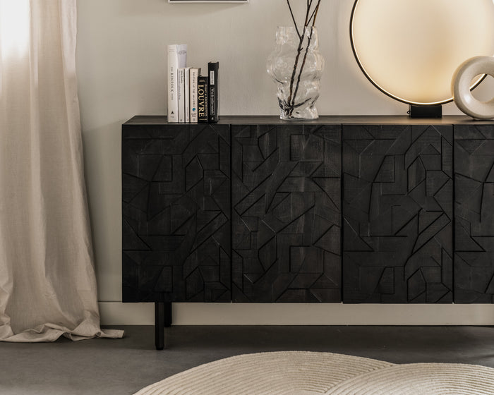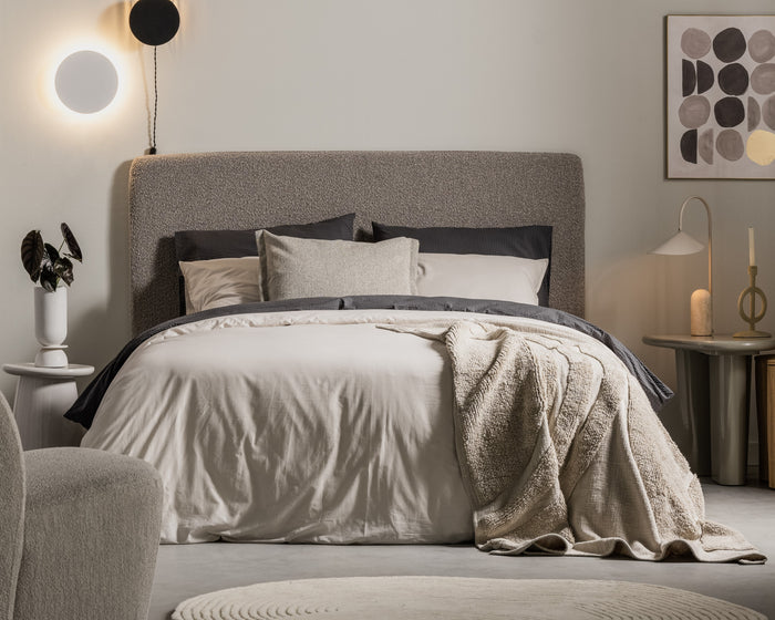 Creëer een contrast met zwarte en witte statement pieces. Denk aan een zwart houten dressoir en een minimalistisch canvas schilderij in een witte kleur. Combineer dit met sobere kleuren als beige- en bruintinten in combinatie met verschillende grijzen voor een serene uitstraling. Ga bijvoorbeeld voor een comfortabel dekbedovertrek of een handige bijzettafel in een beige tint. Kies voor een boxspring bed in combinatie met een hoofdbord om je bed gemakkelijk in de juiste stijl om te toveren.