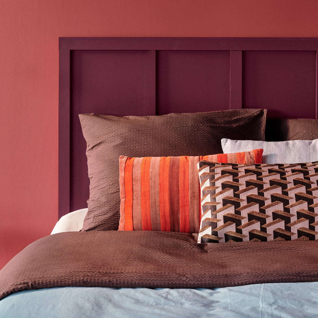 Beddengoed bepaalt voor een groot deel de sfeer in je slaapkamer. Kies een basiskleur die bij jou past (crème, taupe, lichtgrijs, saliegroen, vergrijsd blauw of misschien oudroze) en combineer meerdere tinten binnen die kleurenfamilie om het geheel tot leven te brengen. Speel niet alleen met kleur, maar ook met textuur. Zo krijg je een speels geheel zonder dat het onsamenhangend of chaotisch oogt. Kies bijvoorbeeld voor een mix van sierkussen in linnen, katoen, wafelstof of een teddy en voeg een plaid toe. Houd het totaal rustig door ongeveer twee accentkleuren te gebruiken, zodat je kleuren kunt herhalen zonder dat het druk wordt. Te veel verschillende tinten op het bed voelt snel chaotisch, terwijl herhaling juist zorgt voor die serene, luxe uitstraling.