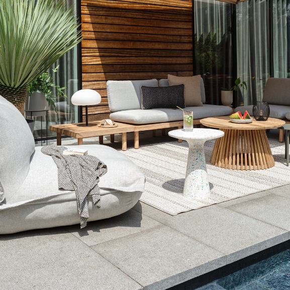 Een belangrijk kenmerk van deze tuinstijl is dat het comfort van het interieur binnen wordt doorgetrokken naar buiten. Maak daarom gebruik van grote meubelen die centraal staan in de tuin. Denk aan een mooie eettafel waaraan je uren kunt tafelen of een stijlvolle loungestoel waarin je heerlijk kunt ontspannen. Ook een comfortabele loungebank – die veel wegheeft van een bank voor binnen – mag niet ontbreken in een moderne tuin!