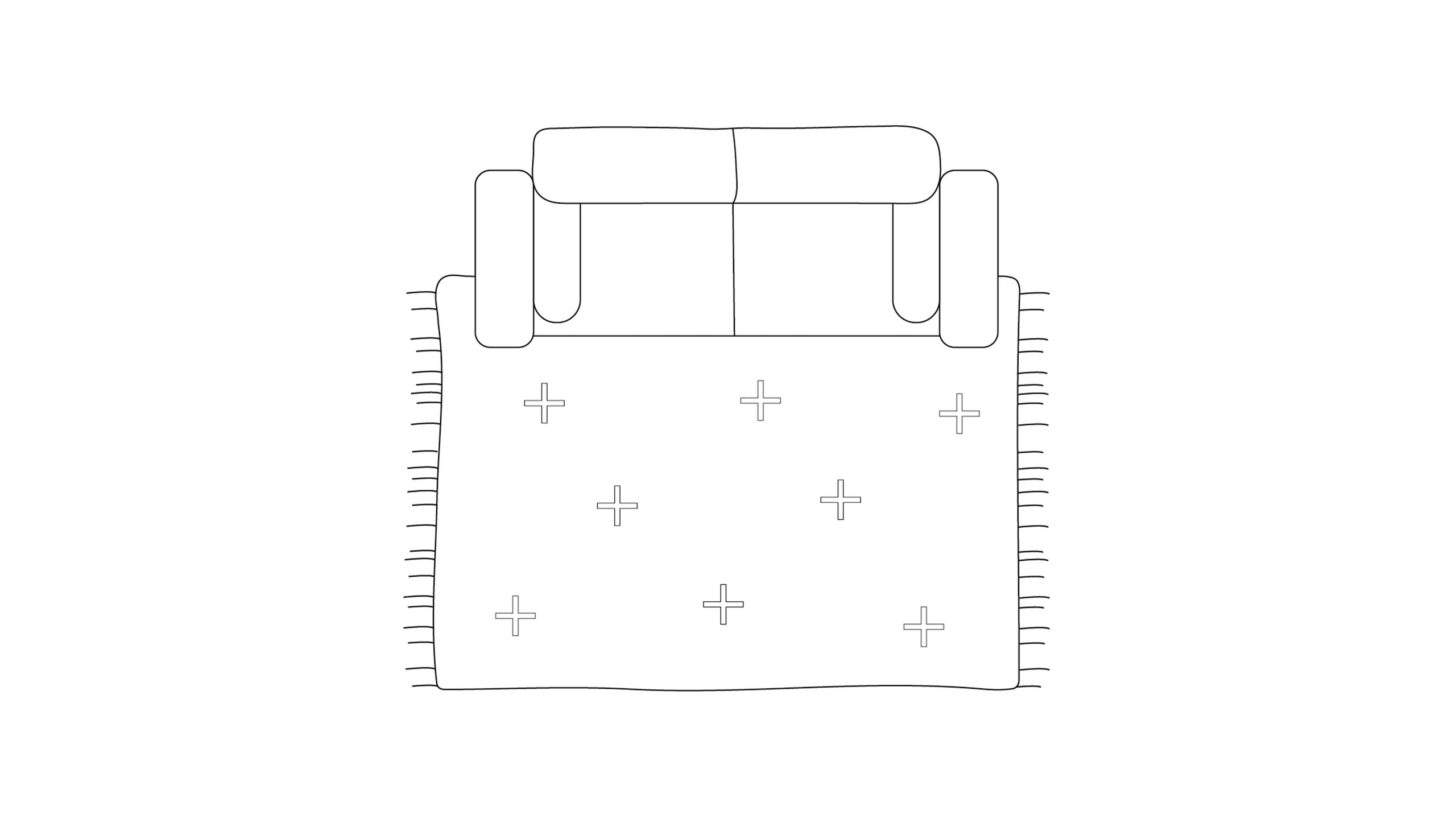 Meet vooraf de bank op en tel daar ongeveer 30 centimeter bij op. Zo zorg je ervoor dat het vloerkleed ongeveer 15 centimeter onder en naast de bank ligt. Bij een tweezitsbank zijn meestal vloerkleden van 200x140 of 230x160 centimeter goede opties. Heb je een driezitsbank? Dan voldoen vaak de maten 240x170 en 300 x 200 centimeter.
