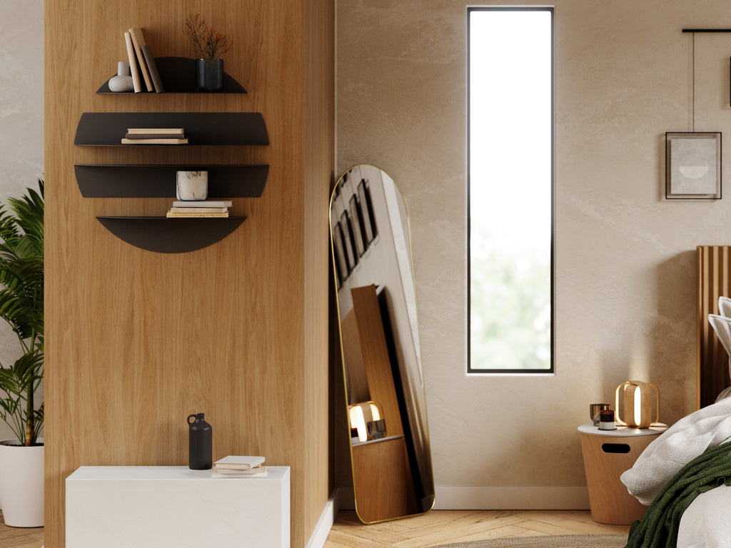 Een nachtkastje naast het bed biedt een handige plek om persoonlijke spullen neer te leggen, zoals een boek, bril, telefoon of een glas water. Kies je voor een nachtkastje met lades, dan zorg je ervoor dat je de slaapkamer georganiseerd en opgeruimd houdt. Om optimaal gebruik te maken van de beschikbare ruimte, zijn zwevende nachtkastjes of wandplanken een slimme keuze. Doordat ze direct aan de muur worden gemonteerd, blijft het vloeroppervlak vrij, wat een gevoel van ruimte creëert—vooral in kleinere slaapkamers. Deze oplossingen zijn perfect voor essentials zoals een leeslampje, een glas water of je telefoon. Bovendien kun je er gemakkelijk onder schoonmaken, wat bijdraagt aan een frisse en opgeruimde uitstraling.