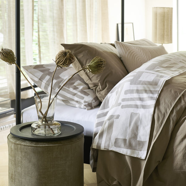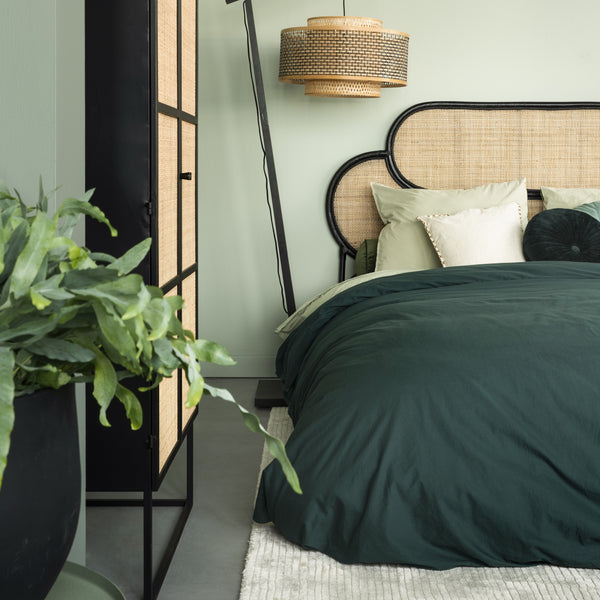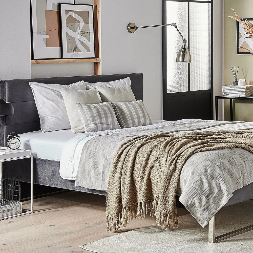 Bij het inrichten van een kleine slaapkamer kunnen ook de woonaccessoires helpen om de ruimte optisch groter te doen lijken. Een van de meest effectieve trucs is het gebruik van spiegels. Spiegels reflecteren licht en creëren de illusie van extra ruimte, vergelijkbaar met het effect van een raam. Door een grote spiegel aan de muur te hangen, kan je slaapkamer lichter en ruimer aanvoelen, wat vooral in een kleine ruimte een groot verschil maakt. Een andere slimme manier om een kleine slaapkamer groter te laten lijken, is door bepaalde objecten of patronen meerdere keren te herhalen. Dit kan bijvoorbeeld door dezelfde print of kleur terug te laten komen in verschillende accessoires, zoals sierkussens, een plaid of een vloerkleed. Door dit visuele herhalingspatroon wordt de illusie gewekt dat het object of patroon zich ook buiten je zicht voortzet, waardoor de ruimte minder beperkt lijkt.