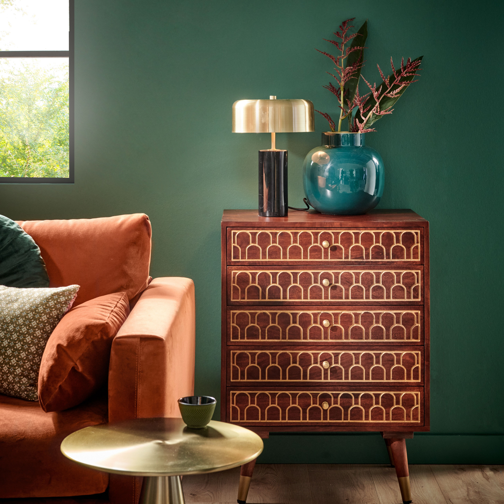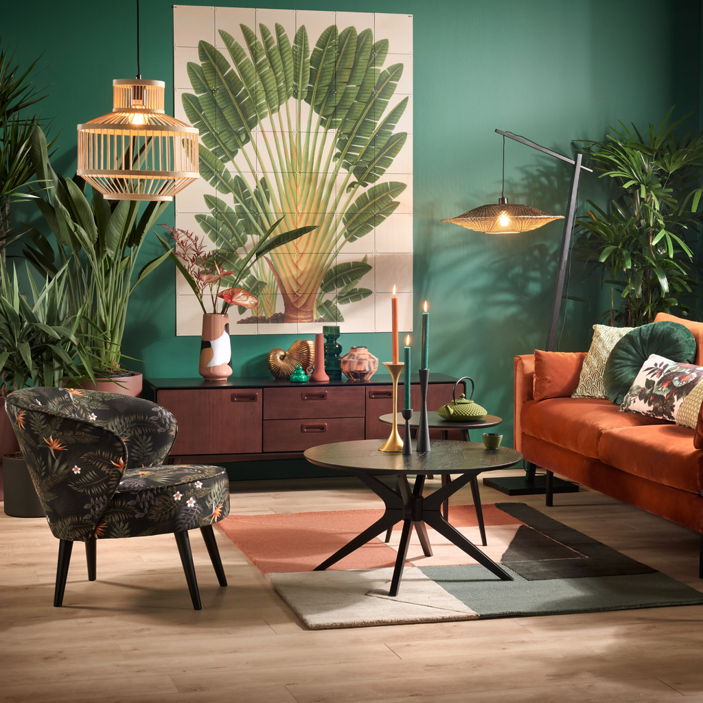 Een modern sprookje met oriëntaalse klasse: met deze trend mag je jouw creativiteit de vrije loop laten gaan en spelen met lef. Je kunt veel verschillende structuren, motieven en prints combineren. Maak gebruik van felle aardetinten en hier en daar een vleugje zwart en goud. Gelakt hout en grafische kleurvlakken laten je in oosterse sferen wanen. Dit resulteert in een prachtig botanisch, chique interieur.