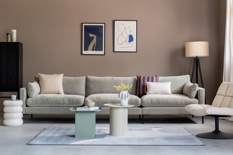 In de Wabi Sabi-trend zie je veel natuurlijke materialen zoals steen, hout, rotan en keramiek terug. Kies bijvoorbeeld voor deze gezellige stoel met een leuning gemaakt van rotan. Met zijn unieke uitstraling trekt hij gegarandeerd de aandacht in je woonkamer. Dit asymmetrische vloerkleed past perfect in een Wabi Sabi-interieur door de verschillende structuren. In een woonkamer mag een comfortabele bank om na een lange dag op neer te ploffen niet ontbreken. Deze heerlijke bank in een subtiele kleur met een hint van olijf is superzacht: niet alleen qua uitstraling, maar de zachtheid voel je ook als je erop ligt!
