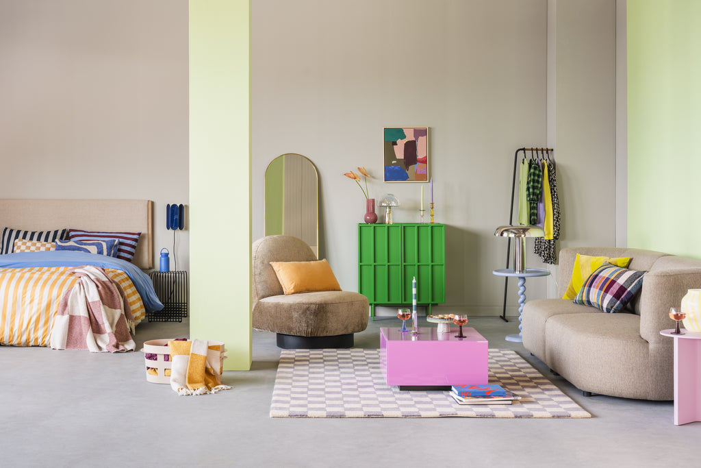 Laat zien wie je bent en kom thuis in een interieur waar je vrolijk van wordt. Deze trend is een uitspatting van eigenheid en vrolijkheid en zet zich af tegen het minimalisme. Felle kleuren als geel, oranje en groen zie je terug in vlakke en gladde materialen. Kunststof in tafels, velours banken en kussens zorgen voor sfeer en tonen lef. Kinderlijk? Designvormen en objecten geven dit thema volwassenheid.