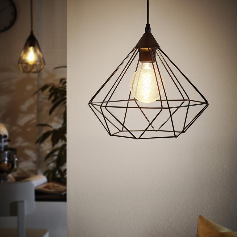 Vind je alleen een peertje iets te minimalistisch? Kies dan voor een light bulb met een industrieel open frame. Een zogeheten wireframe hanglamp is stoer en tegelijk heel stijlvol. Hij past overal: boven de keukentafel of in de hal. De hanglamp is van dik staaldraad voorzien, waardoor het een echte eye-catcher voor in een industrieel interieur is! Vooral merken als EGLO en Lucide hebben een groot assortiment aan wired lampen, dus neem vooral een kijkje.