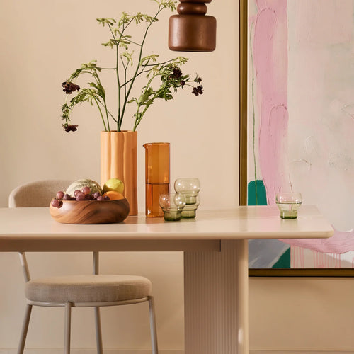 We leven in een wereld die steeds op een sneller tempo gaat draaien. Daarom groeit onze voorkeur voor een interieur waar we juist even pauze kunnen nemen van de buzz van buiten. Verfijnde Balans is de interieurtrend van 2026 die dat gevoel perfect vangt: zacht, gelaagd en organisch met een elegant karakter dat rustig aanvoelt maar nooit saai is. In plaats van harde contrasten en strakke perfectie draait het in deze trend om tactiele materialen, warme stoffen en natuurlijke elementen. Denk aan bouclé, licht eikenhout en transparante accenten die het interieur luchtig houden. Tot slot voegen we een onverwacht kleuraccent of een speels detail toe als finishing touch. Dit brengt het geheel tot leven, terwijl we die rust bewaren.