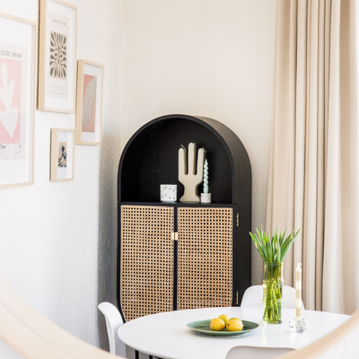 De authentieke woning is het perfecte canvas voor haar Scandinavische interieur. "Ik houd van een neutrale basis met veel wit en voeg hier kleur aan toe door te experimenteren met accessoires in vrolijke pasteltinten. Denk aan een opvallende vaas, gekleurde kaarsen, of een lampenkap met een bijzonder patroon." Het vele lichtinval en de hoge plafonds maken Kim's woning bijzonder. Door de vele karakteristieke elementen voelt het als een knus, maar modern stadsappartement. En dankzij de hoge ligging schijnt vaak de zon naar binnen. De erker is dan ook haar favoriete plek in huis.
