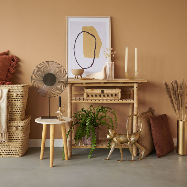 Terracotta: een betere trendkleur voor een gezellige woonkamer kunnen we niet bedenken. Samen met aardse bruintinten en zachtroze accenten ontstaat een vernieuwend kleurenpalet dat prachtig toon op toon toepasbaar is. Natuurlijke materialen, zoals robuust leer, warm hout en gevlochten jute, maken het verrassend en spannend. Kleed het geheel aan met gedroogde bloemen en grassen of een bijzondere canvas wandplaat aan de muur.