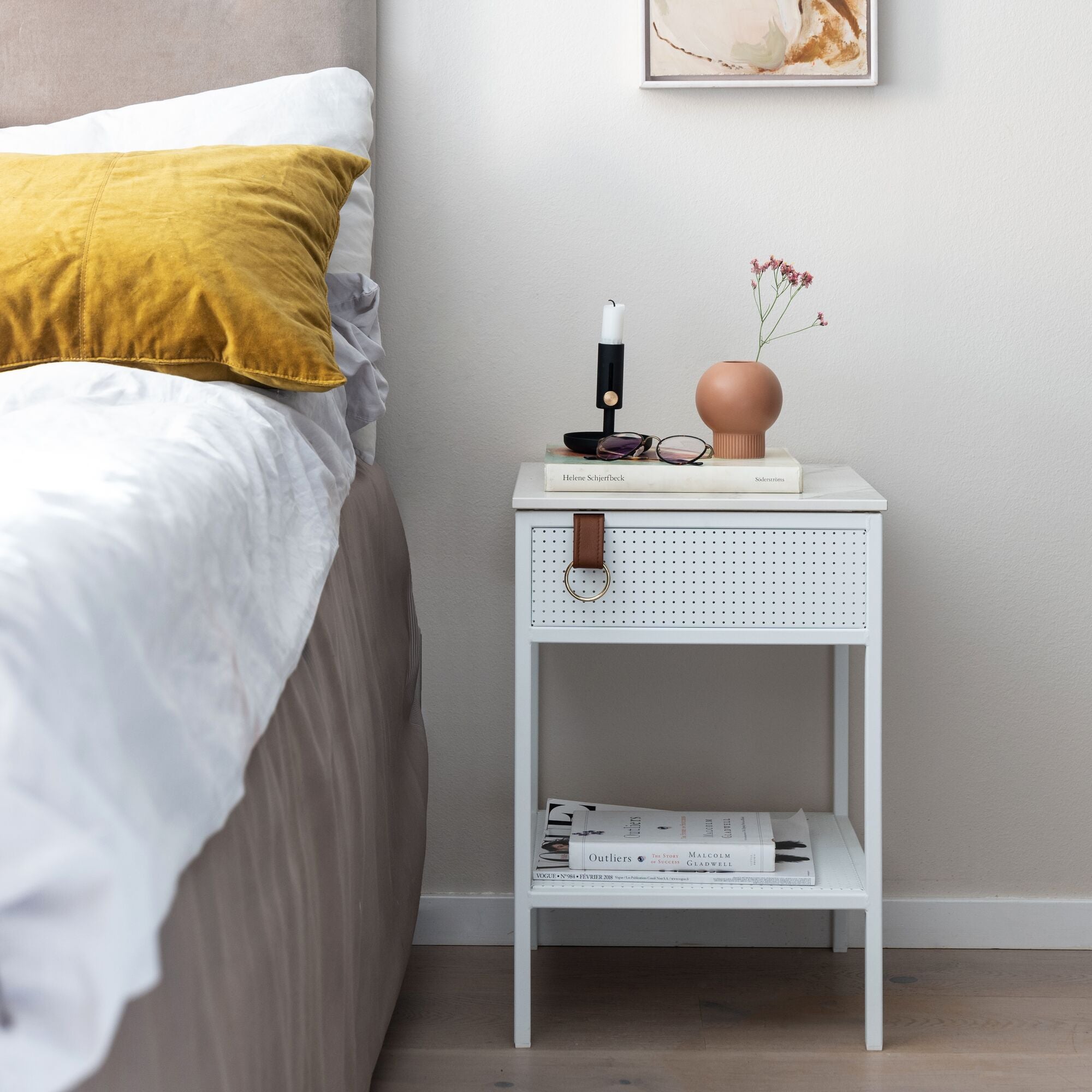 Houd je van een minimalistische woonstijl? Gebruik dan gewoon een krukje als nachtkastje! Krukjes zijn er in talloze maten, kleuren en stijlen. Kom je net wat ruimte te kort? Plaats dan een opbergmandje onder het krukje; zo heb je genoeg opbergruimte. Op zoek naar een echte eyecatcher? Ga dan voor een design krukje, bijvoorbeeld van &tradition of Kartell. Tip: snuffel ook eens tussen de bijzettafels voor een geschikt nachtkastje.