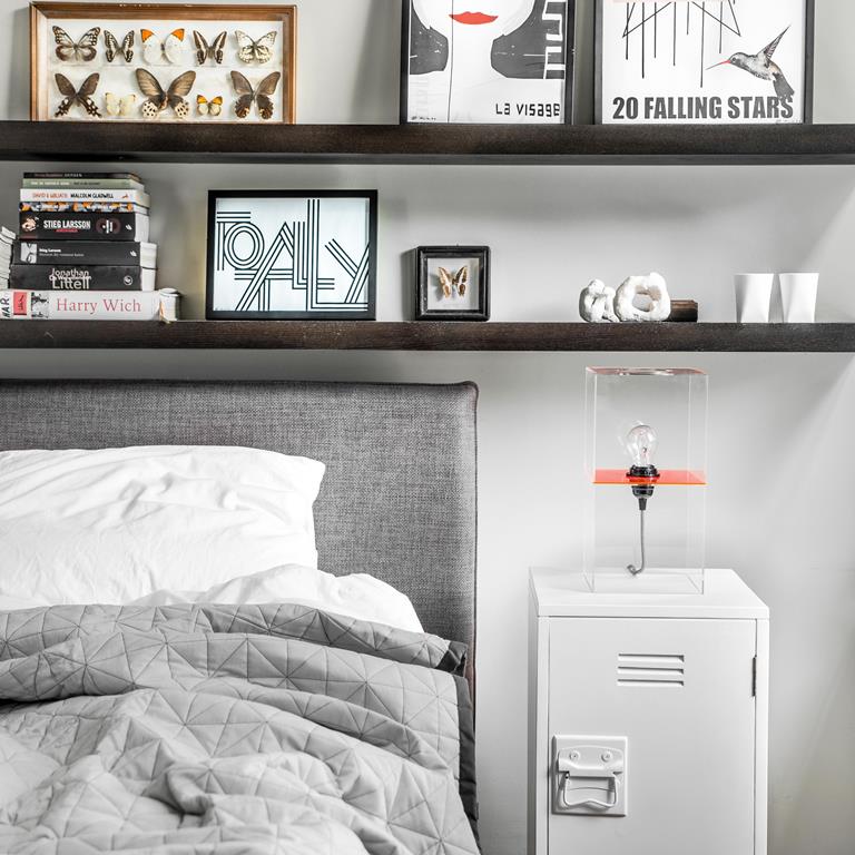 Zolang je niet meer dan je telefoon, wekker en boek op het nachtkastje neerlegt, is een mooie wandplank meer dan voldoende als nachtkastje. Met één plank naast het bed creëer je een rustige sfeer. Voor een speels effect hang je juist meerdere planken naast of boven elkaar. Ook met verschillende kastmodules kun je een creatief nachtkastje creëren. Maak het sfeervol en decoreer ze met verschillende woonaccessoires.
