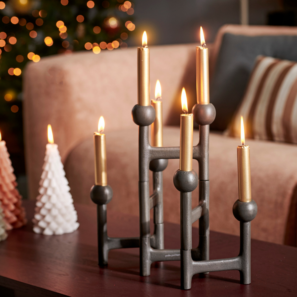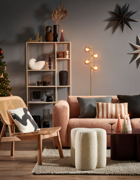 Donkere dagen vragen om sfeervol licht. Laat de basisverlichting uit en plaats hier en daar een tafellamp of dimbare vloerlamp. Zo creëer je een knusse sfeer, zonder dat er decoratie aan te pas komt. Voeg verschillende kaarsen toe voor een instant kerstgevoel.
