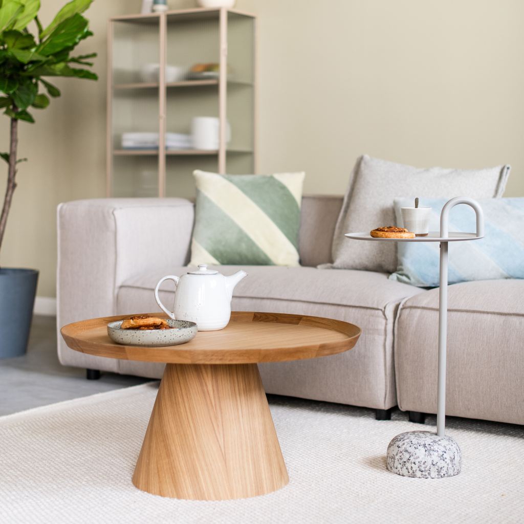 Je bent al een heel eind op weg! Je kent je woonstijl en hebt bepaald welke functies je woonkamer gaat hebben. Met de perfecte indeling in je achterhoofd wordt het tijd de woonkamer écht in te richten. Begin met een goede basis en werk met kleuren uit je moodboard. Kies de juiste comfortabele bank, een praktische eettafel en werk toe naar kleinere meubels zoals een on trend bijzettafel en eetkamerstoelen. Maak het geheel af met een fijn vloerkleed, een mooie vaas en zachte sierkussens voor de gezelligheid in huis!