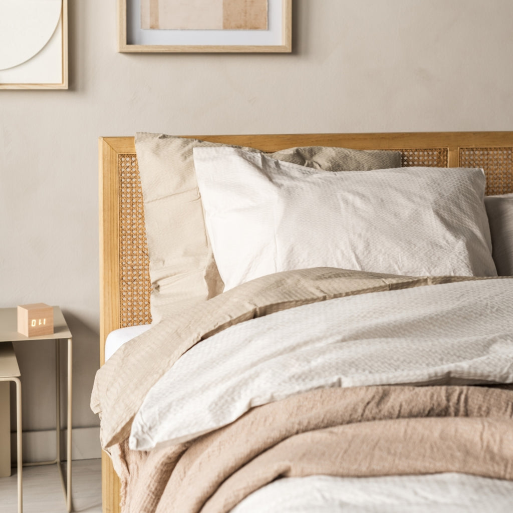 Ga voor een serene sfeer in de slaapkamer met een fris, knisperend dekbedovertrek. De najaarstrend Winter Wellness leent zich hier perfect voor. Deze stijl heeft een Scandinavische basis, aangevuld met neutrale warme tinten en een verrassende accentkleur: spicey green. Kies een dekbedovertrek in dit kleurenpalet om dat echte zen-gevoel in de slaapkamer te krijgen. Een subtiele print kan zorgen voor een interessante twist.