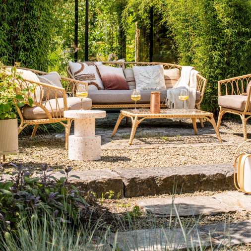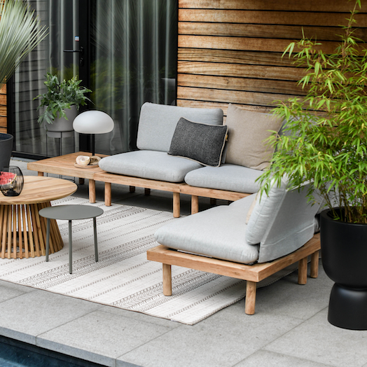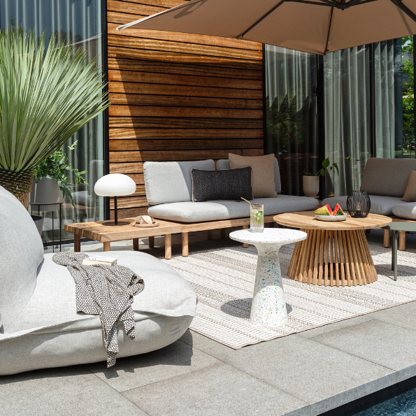 Een belangrijk kenmerk van deze tuinstijl is dat het comfort van het interieur binnen wordt doorgetrokken naar buiten. Maak daarom gebruik van grote meubelen die centraal staan in de tuin. Denk aan een mooie eettafel waaraan je uren kunt tafelen of een stijlvolle loungestoel waarin je heerlijk kunt ontspannen. Ook een comfortabele loungebank – die veel wegheeft van een bank voor binnen – mag niet ontbreken in een moderne tuin!