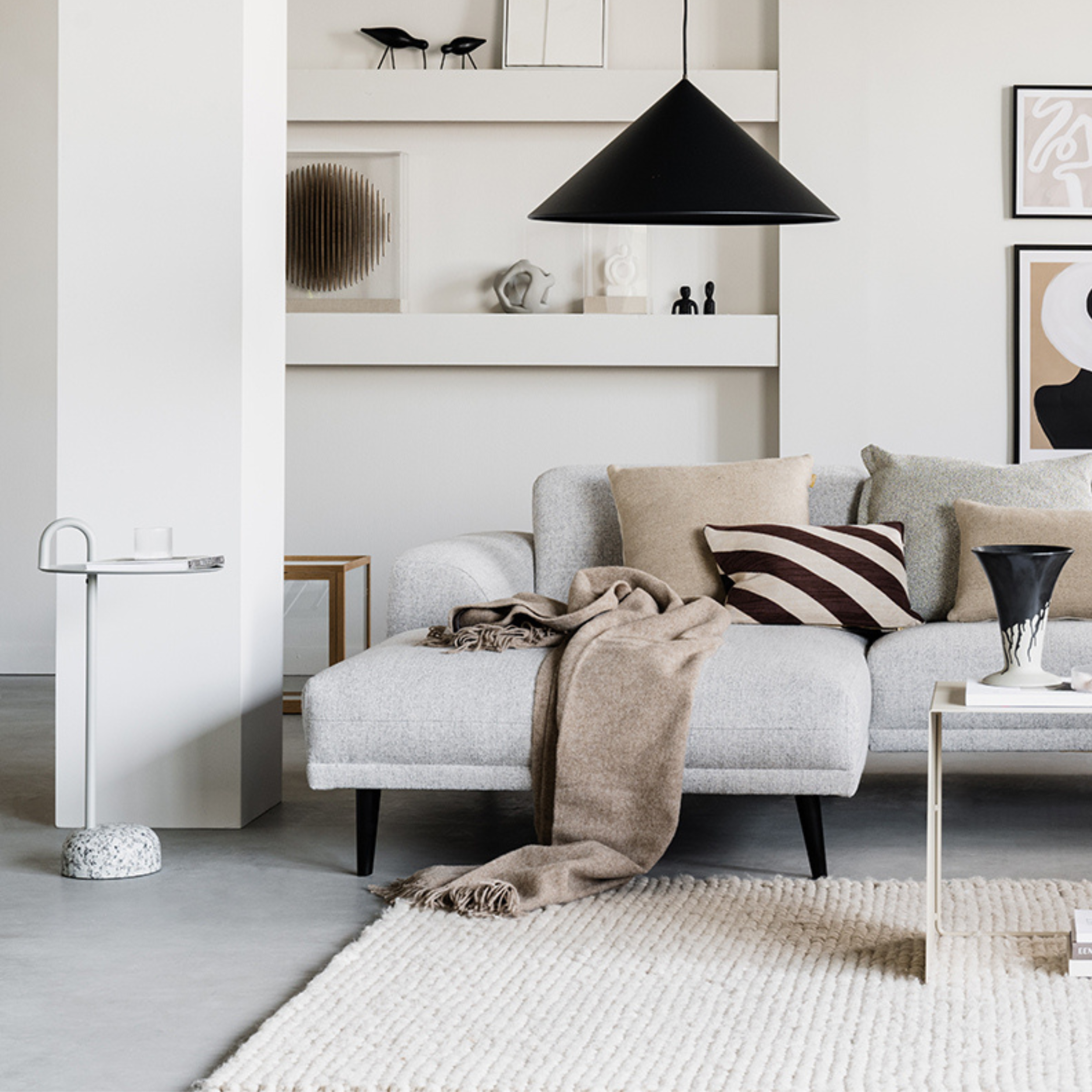 Bij een moderne woonstijl wordt vaak gekozen voor de basiskleuren wit en zwart, maar ook grijs en bruin doen het goed in een strak interieur. Voor de balans zien we vaak een felle accentkleur terug, bijvoorbeeld een gekleurde fauteuil of kleurrijk kunstwerk. Dankzij het neutrale kleurenpalet springen deze items er extra mooi uit.