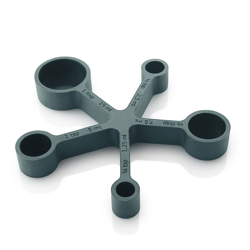 De multifunctionele onderzetter van Eva Solo wordt gegarandeerd jouw favoriete keukenhulpje! Deze onderzetter beschermt oppervlakten niet alleen tegen hete potten, maar functioneert ook als maatlepel wanneer nodig is. De onderzetter bestaat uit 5 maatcups die het volume aangeven in milliliters en lepelmaten. De flexibele maatcups kunnen in één hand verzameld worden, zodat jij de lepel kunt gebruiken die je nodig hebt. Na gebruik kan dit product makkelijk gereinigd worden in de vaatwasser.