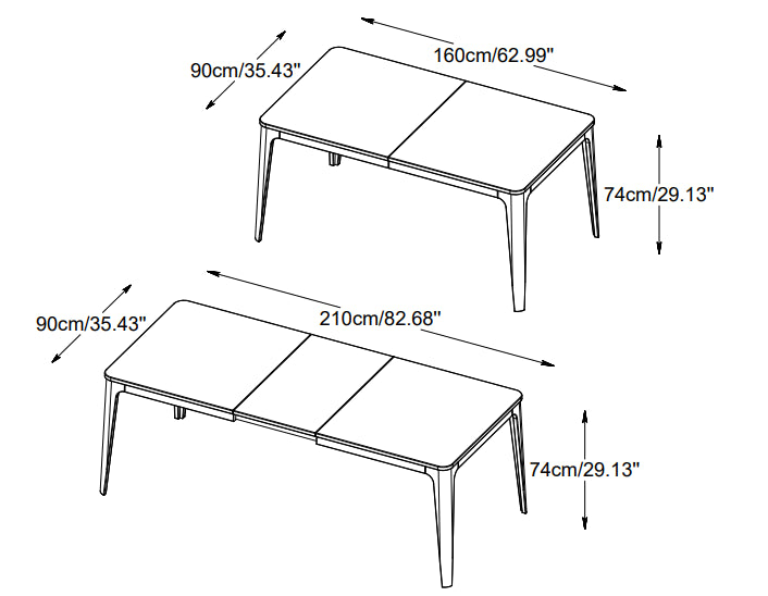 - Afmetingen: 160-210 x 90 x 74 cm (breedte x diepte x hoogte)