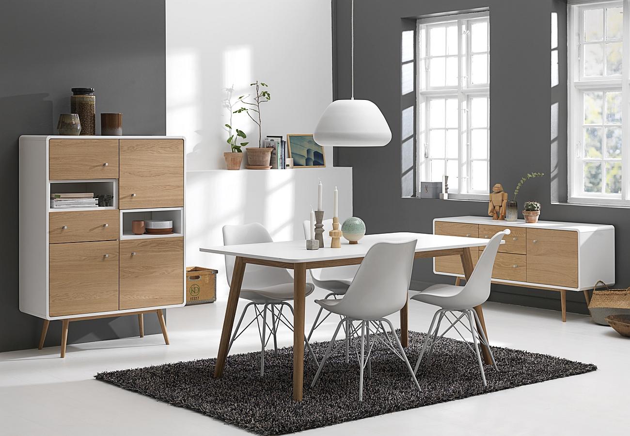 24Designs Hedmark Eettafel - 160x90x75 - Wit Tafelblad - Eiken Poten