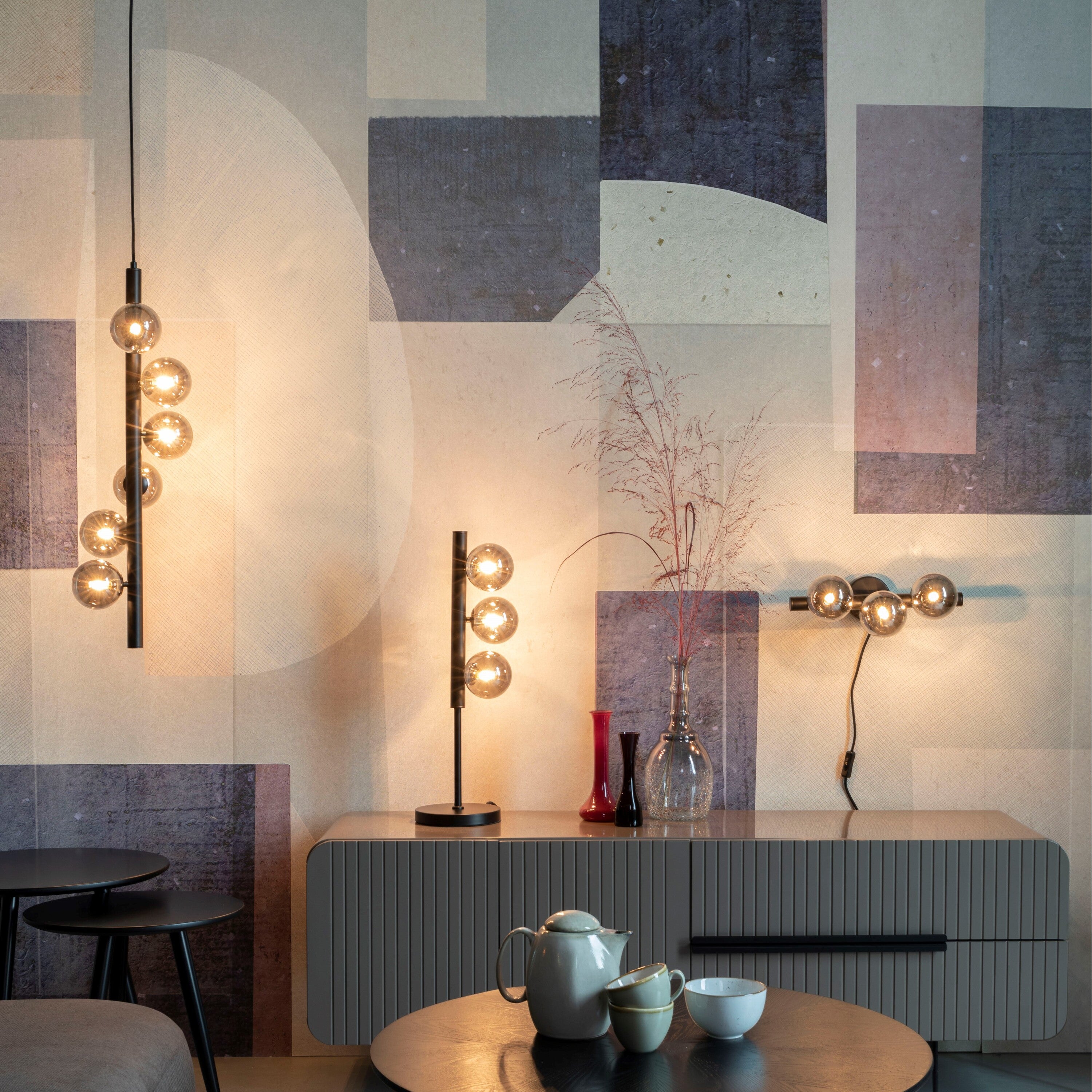 - Materiaal lampenkap: gerookt glas