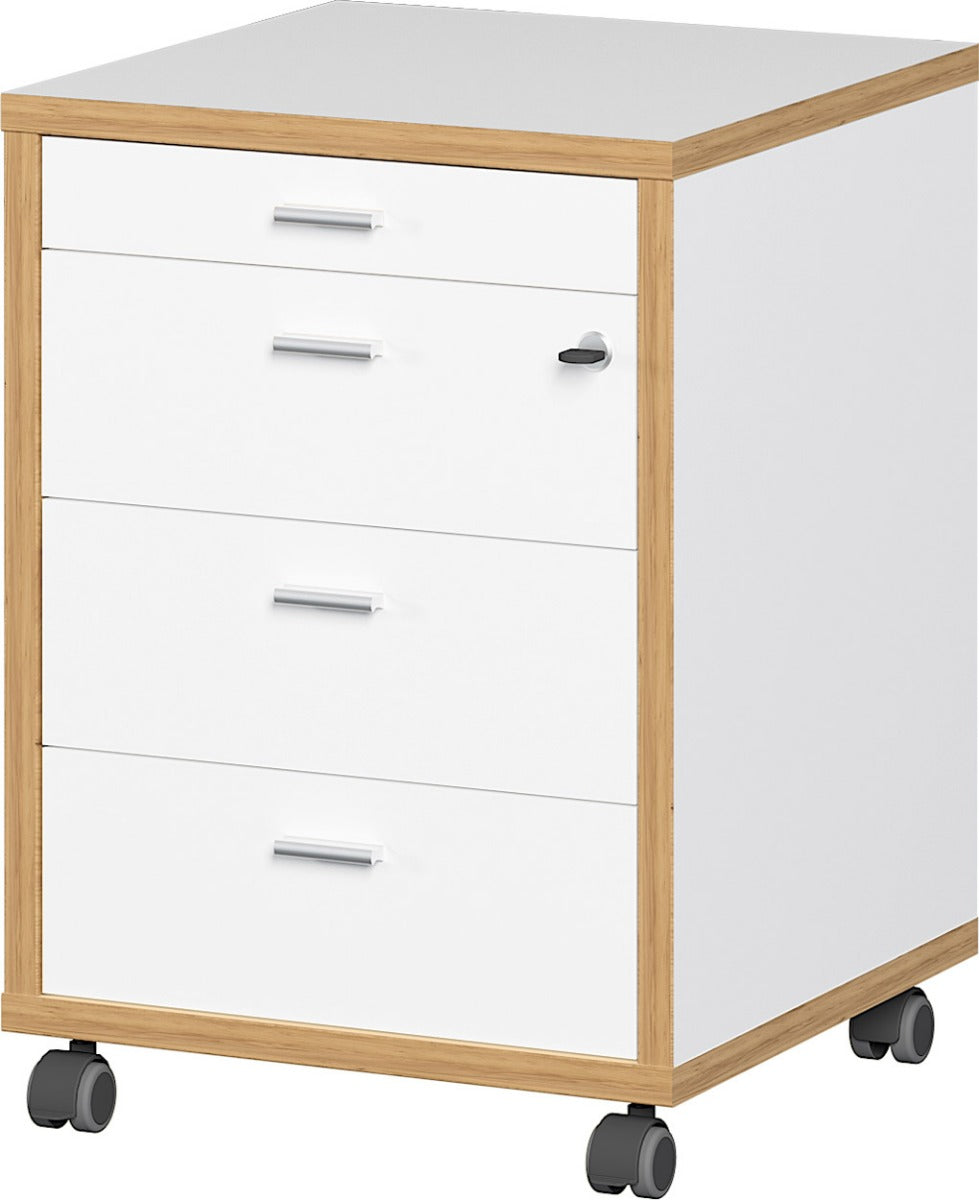 De verrijdbare ladekast heeft vier lades: een kleine en drie grote De tweede lade is afsluitbaar; handig voor het veilig opbergen van belangrijke spullen De ladekast heeft vier praktische wielen waarvan je er twee kunt vergrendelen Daardoor is de kast mobiel én stabiel; als je de ladekast wil verplaatsen haal je gewoon de wielen van het slot!