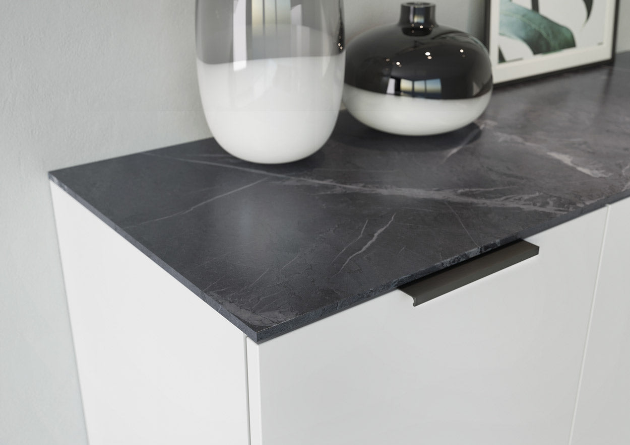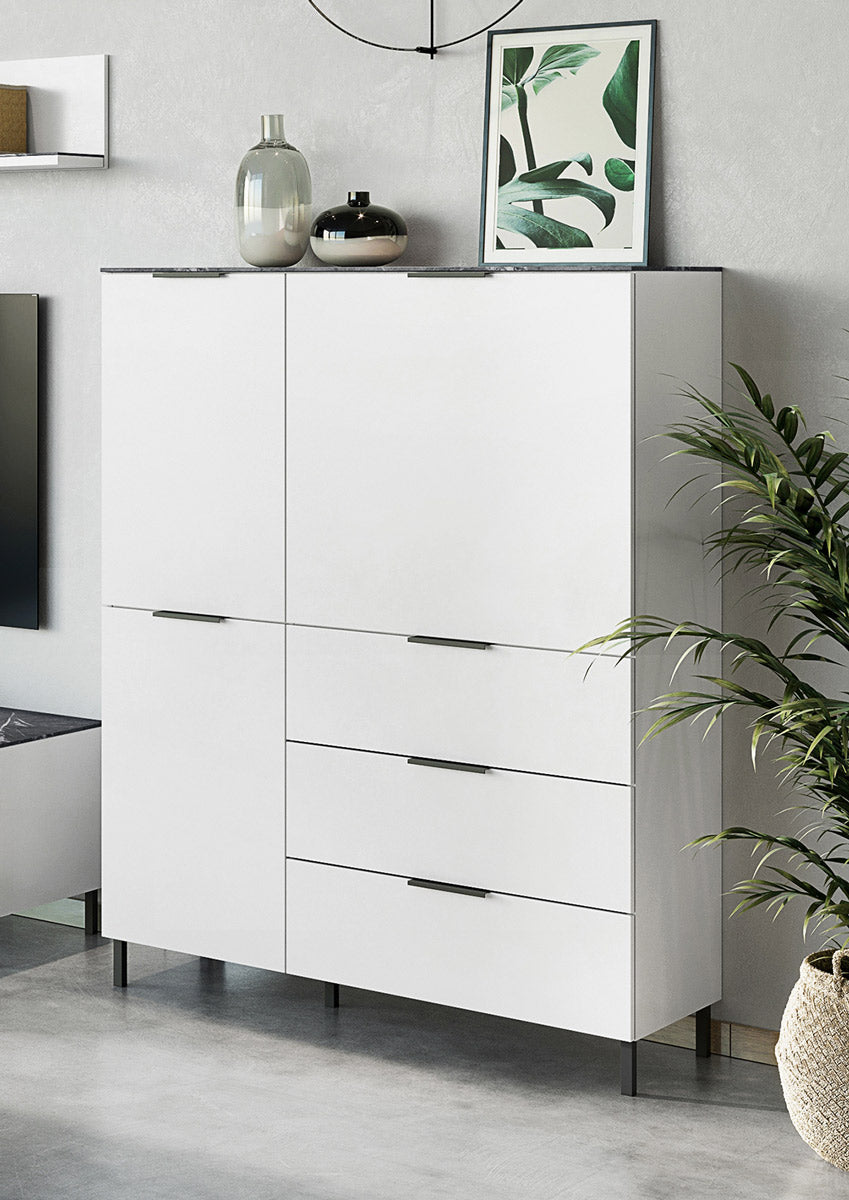 Uniek aan deze 24Designs Star opbergkast is het witkleurige frame in combinatie met het marmerlook bovenpaneel De 24Designs Star opbergkast is voorzien van zwart gepoedercoate poten en zwart gepoedercoate handgrepen Dat maakt de kast dan ook een moderne lust voor het oog Extra luxe zijn de drie gedempte deuren en de drie lades met softclose-functie Daardoor vallen de deuren en lades zacht dicht nadat je je spullen hebt opgeborgen Plaats servies achter de deuren op de in hoogte verstelbare planken en berg linnen op in de lades