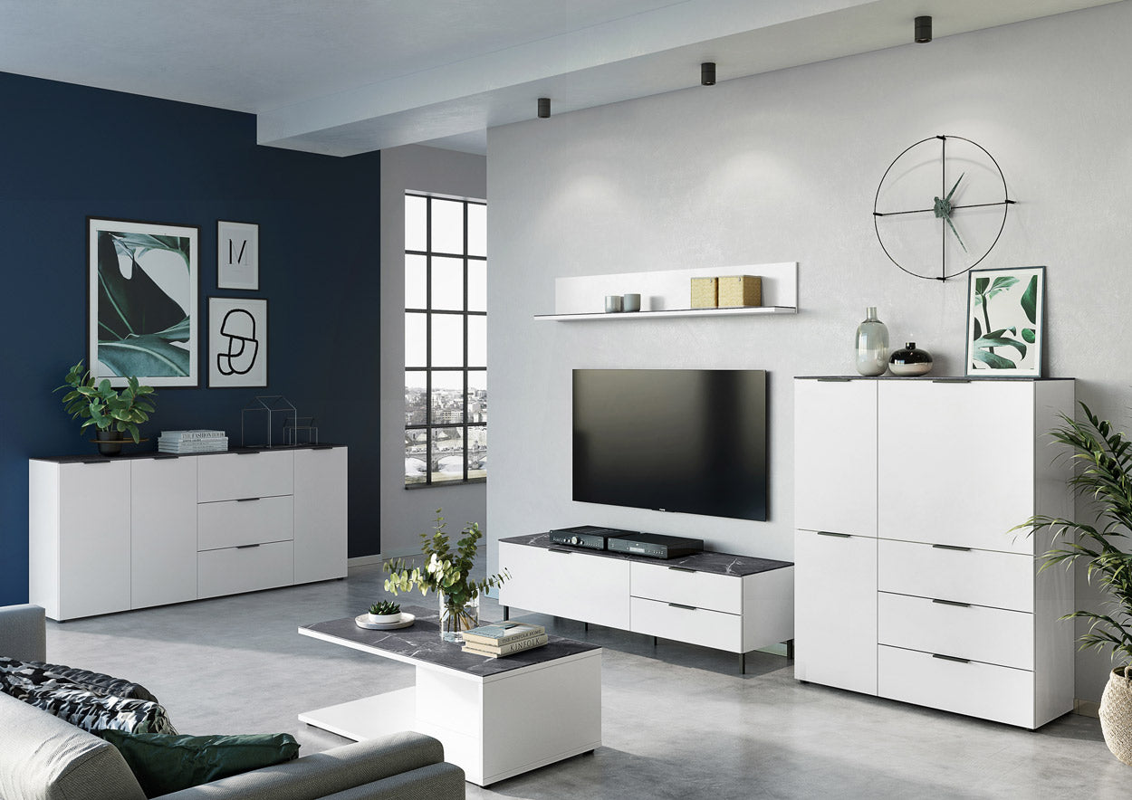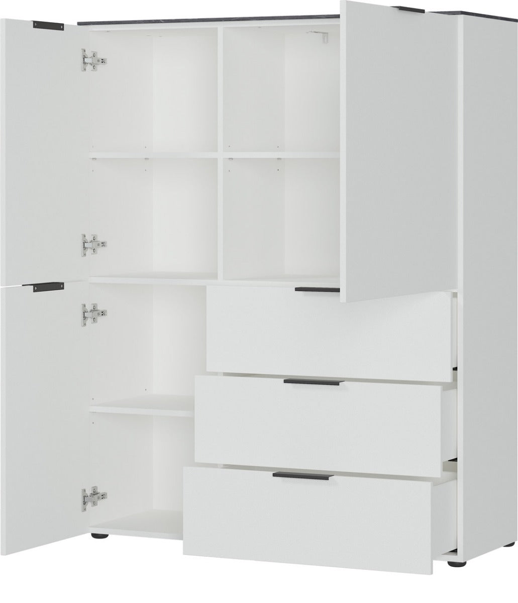 - Voorzien van drie zelfsluitende lades, drie gedempte deuren en drie in hoogte verstelbare planken