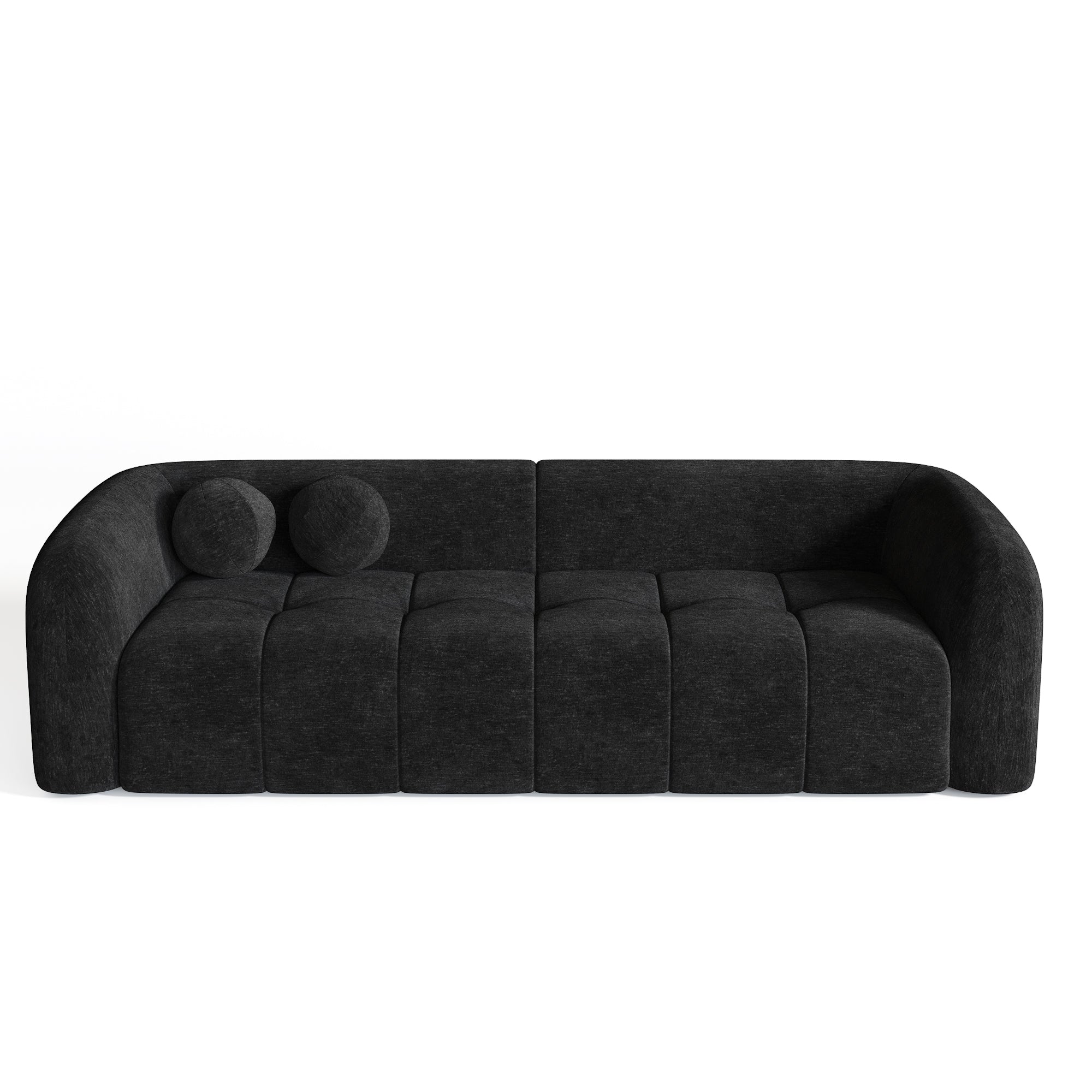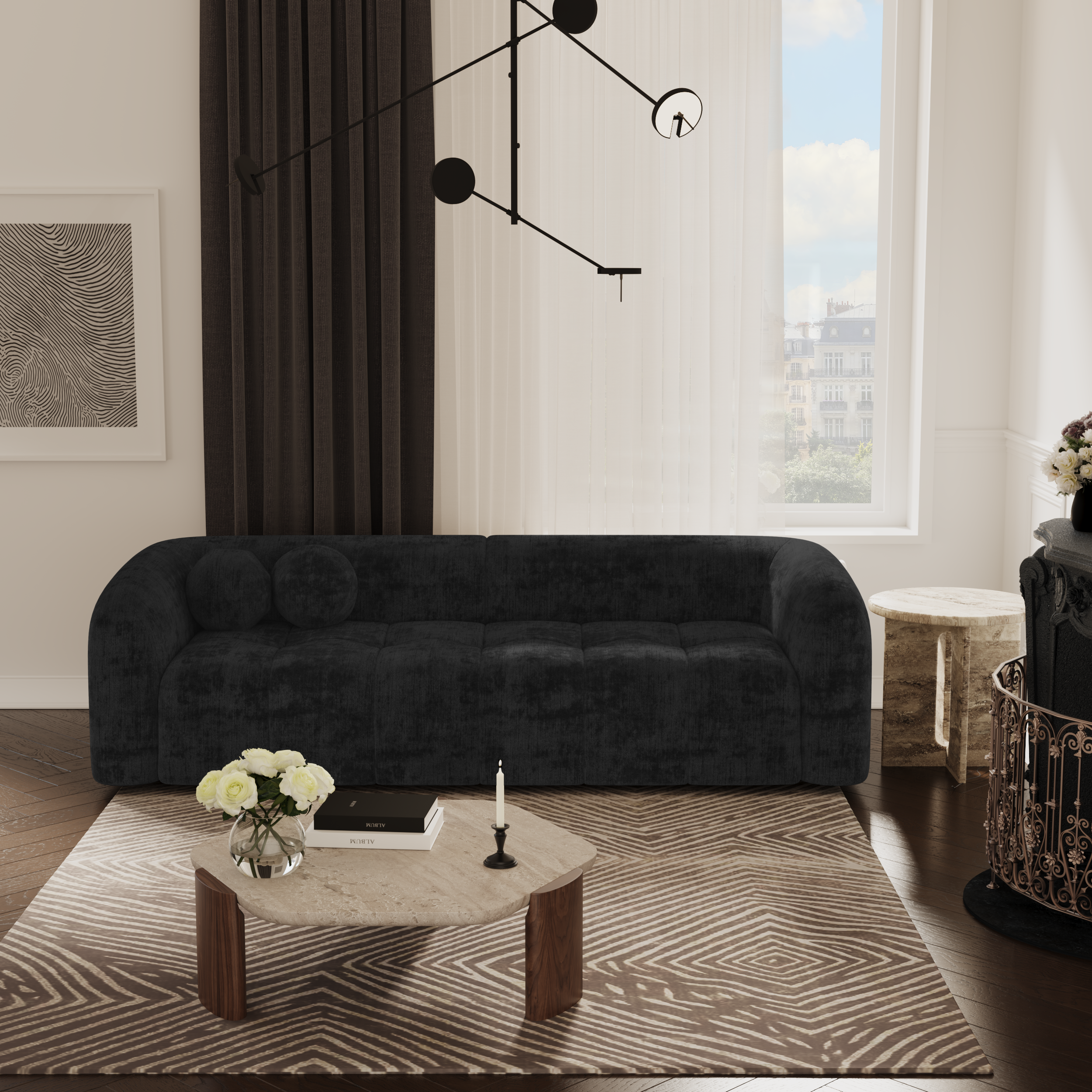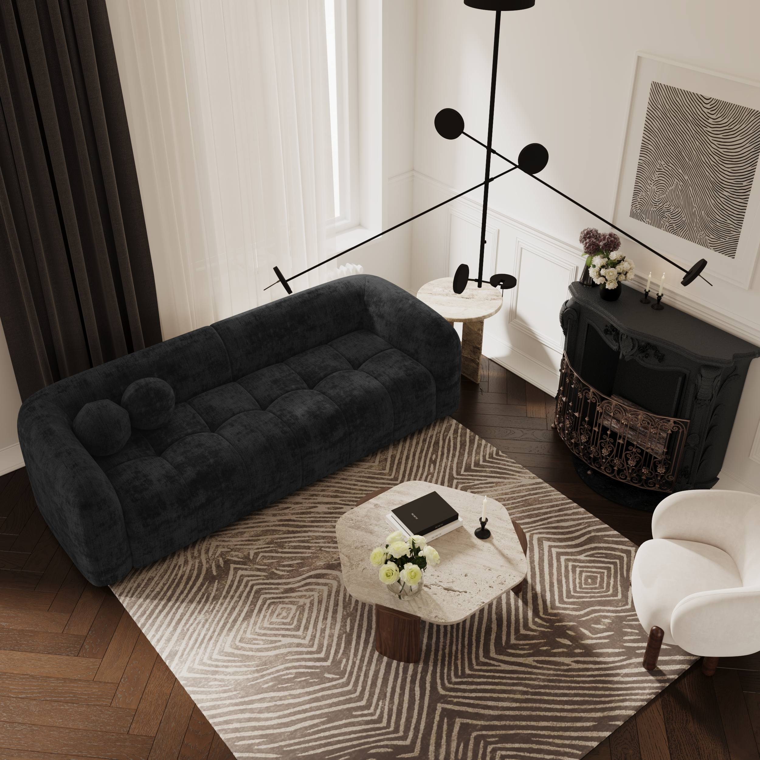 Ontdek HAUSSMANN, de designbank met afgeronde vormen, gesublimeerd door de twee bolletjeskussens, voor een trendy en verfijnd interieur.