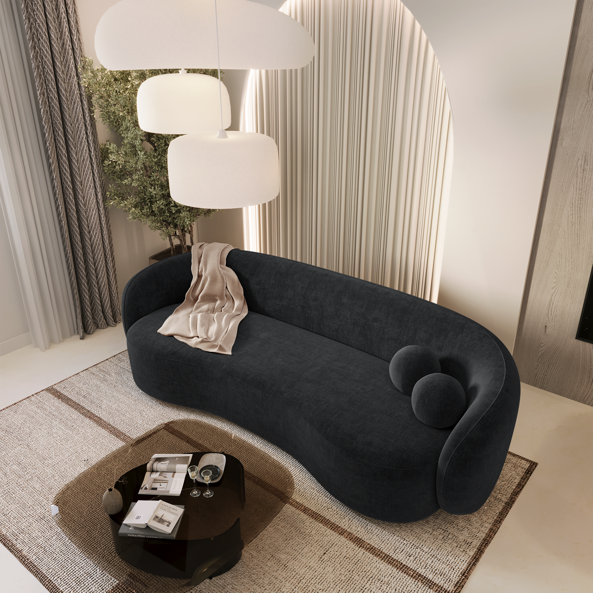 3-zitsbank in zacht aanvoelende geweven stof, zwart 210cm