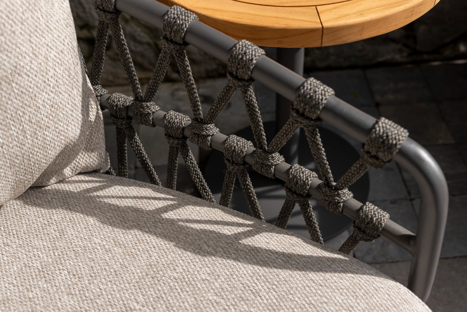 Deze Calpi loungestoel van 4 Seasons Outdoor is gemaakt van RVS en rope. Het RVS is een perfecte basis voor een tuinmeubel. Het materiaal heeft namelijk een lange levensduur en kan niet gaan roesten. Dit frame is onderhoudsvrij, wat ervoor zorgt dat jij je geen zorgen hoeft te maken over deze stoel. Dat is past écht genieten! Het unieke rope patroon van deze stoel zorgt voor een exclusieve uitstraling. Het design vind je nergens anders terug! Het donkere antraciet met het lichte grijs steek mooi tegen elkaar af. De meegeleverde kussens zijn ook nog eens weersbestendig. Daar ben je écht blij mee!