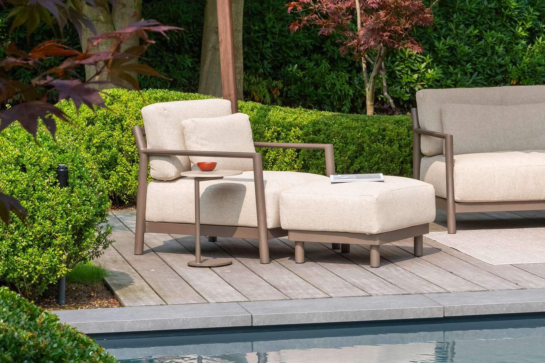 Breng het lounge comfort naar een hoger niveau met Capresi voetenbank. Heerlijk even met de beentjes omhoog naar een lange werkdag en relaxen maar. Het dikke kussen zorgt voor extra comfort. De nieuwe terre kleur, een bruinachtige aardetint, zorgt voor een luxe uitstraling. Wist je dat? Je kan het voetenbankje eventueel ook als extra zitplaats gebruiken! Deze footstool past natuurlijk precies bij de andere tuinmeubelen van Capresi serie van 4 Seasons Outdoor.