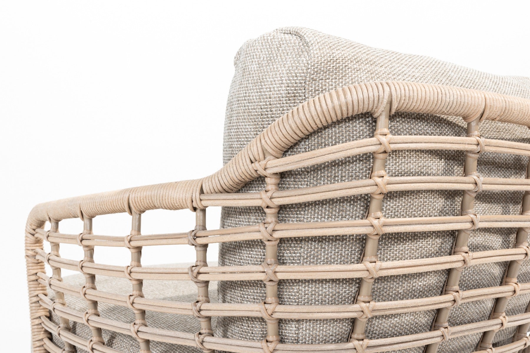 De Como loungestoel van 4 Seasons Outdoor is gemaakt van hoogwaardig aluminium en wicker. Aluminium vormt de perfecte basis voor tuinmeubels vanwege de duurzaamheid en het gemak van onderhoud. Het aluminium frame is afgewerkt met een beschermende coating. Het zitgedeelte van de Como tuinstoel is bekleed met Hularo wicker, dat bekend staat om zijn uitstekende kwaliteit en met de hand wordt gevlochten om de duurzaamheid te waarborgen. Dit vlechtwerkdraad kan niet verkleuren, scheuren of breken. Er wordt dan ook maar liefst 10 jaar garantie gegeven op dit materiaal. Net als aluminium is ook dit materiaal vrijwel onderhoudsvrij. We raden echter aan om het vlechtwerkdraad schoon te maken als dat nodig is, bijvoorbeeld wanneer er vogelpoep of bladeren op het wicker zijn terechtgekomen. De meegeleverde kussens zijn bovendien bestand tegen verschillende weersomstandigheden. Ze zijn gemaakt van Olefin-stof en hebben een vulling van snel drogend schuim. De kussenhoezen hebben ritsen, zodat je ze kunt wassen als ze vies worden. We raden aan de kussens op te bergen wanneer ze niet in gebruik zijn, wat de levensduur verlengt.