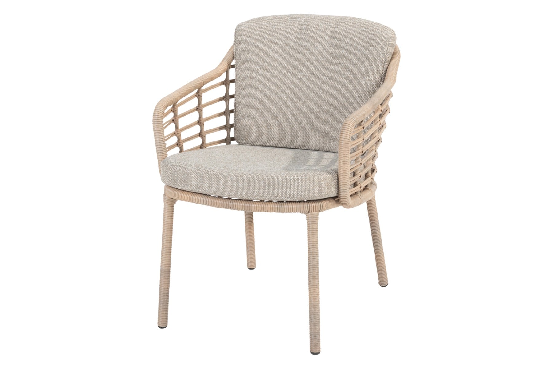 De Como dining tuinstoel van 4 Seasons Outdoor is gemaakt van hoogwaardig aluminium en wicker. Aluminium vormt de perfecte basis voor tuinmeubels vanwege de duurzaamheid en het gemak van onderhoud. Het aluminium frame is afgewerkt met een beschermende coating. Het zitgedeelte van de Como tuinstoel is bekleed met Hularo wicker, dat bekend staat om zijn uitstekende kwaliteit en met de hand wordt gevlochten om de duurzaamheid te waarborgen. Dit vlechtwerkdraad kan niet verkleuren, scheuren of breken. Er wordt dan ook maar liefst 10 jaar garantie gegeven op dit materiaal. Net als aluminium is ook dit materiaal vrijwel onderhoudsvrij. We raden echter aan om het vlechtwerkdraad schoon te maken als dat nodig is, bijvoorbeeld wanneer er vogelpoep of bladeren op het wicker zijn terechtgekomen. De meegeleverde kussens zijn bovendien bestand tegen verschillende weersomstandigheden. Ze zijn gemaakt van Olefin-stof en hebben een vulling van snel drogend schuim. De kussenhoezen hebben ritsen, zodat je ze kunt wassen als ze vies worden. We raden aan de kussens op te bergen wanneer ze niet in gebruik zijn, wat de levensduur verlengt.
