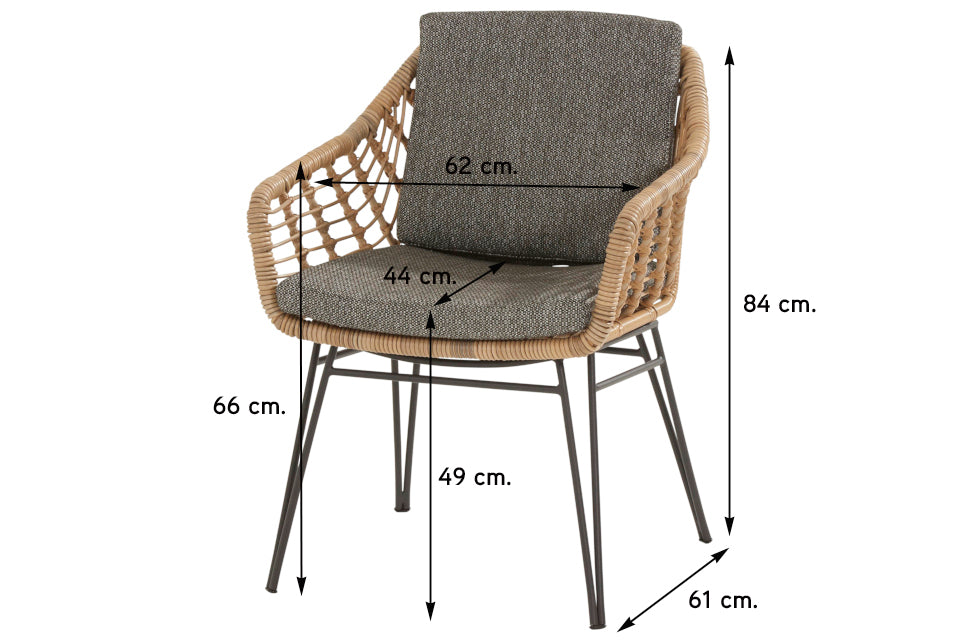 De Cottage dining, een royale stoel met zit en rug kussen voor extra comfort op lekker op uit te rusten!
