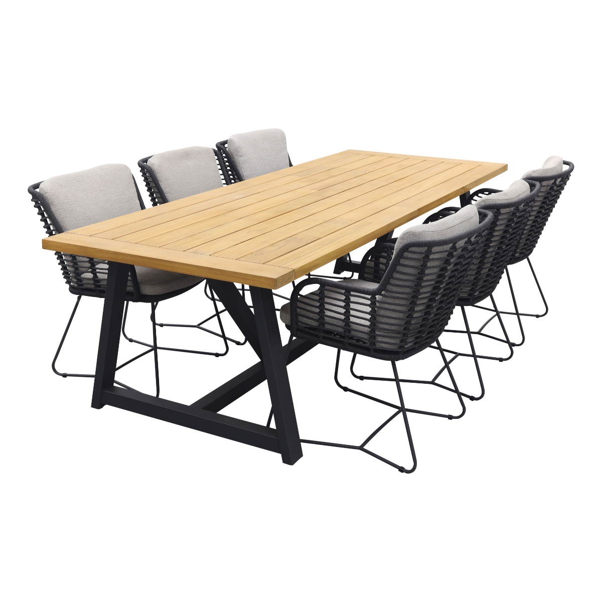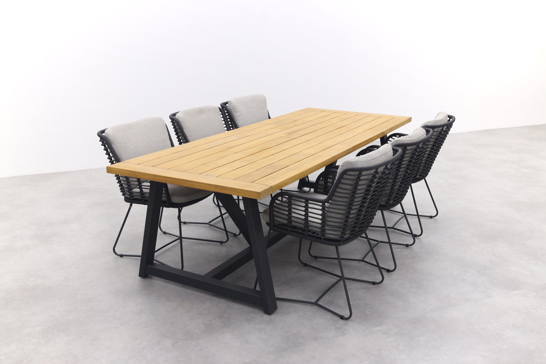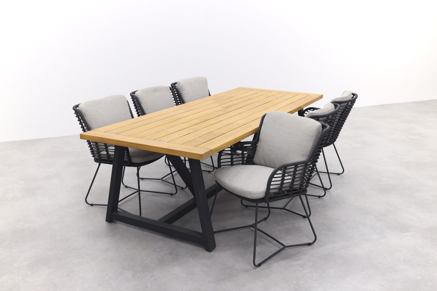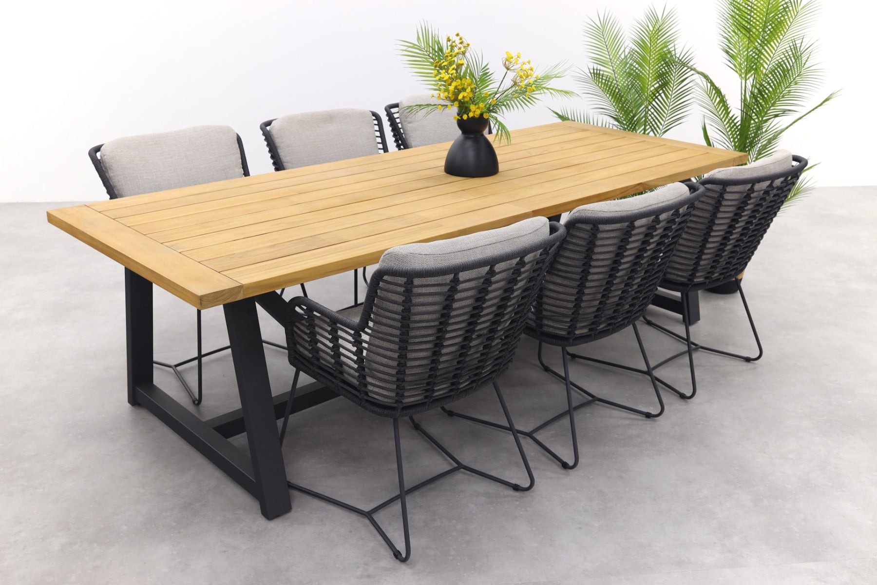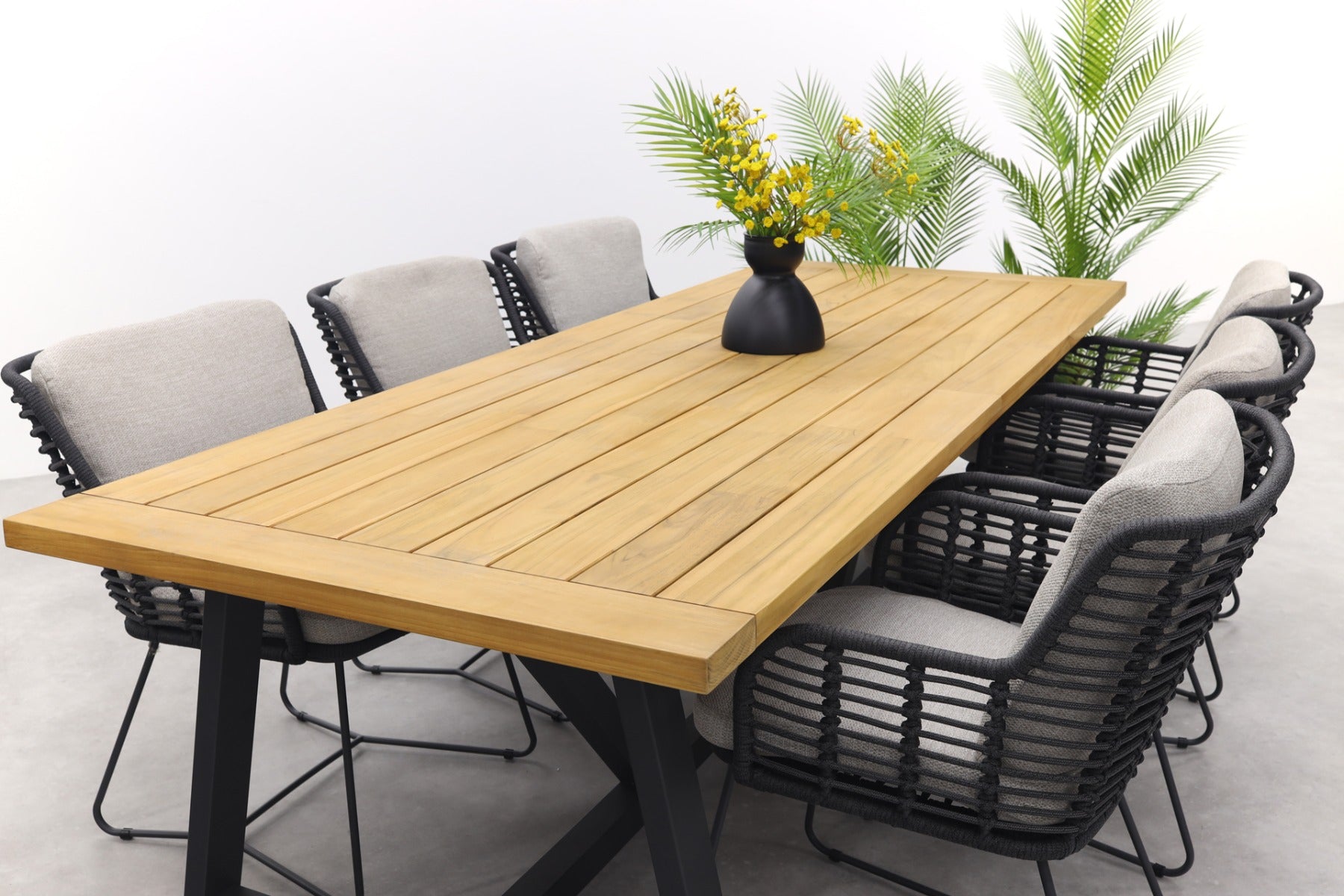 6x 4 Seasons Fabrice tuinstoel - antraciet 1x Taste Noah tuintafel - 260x100 cm.