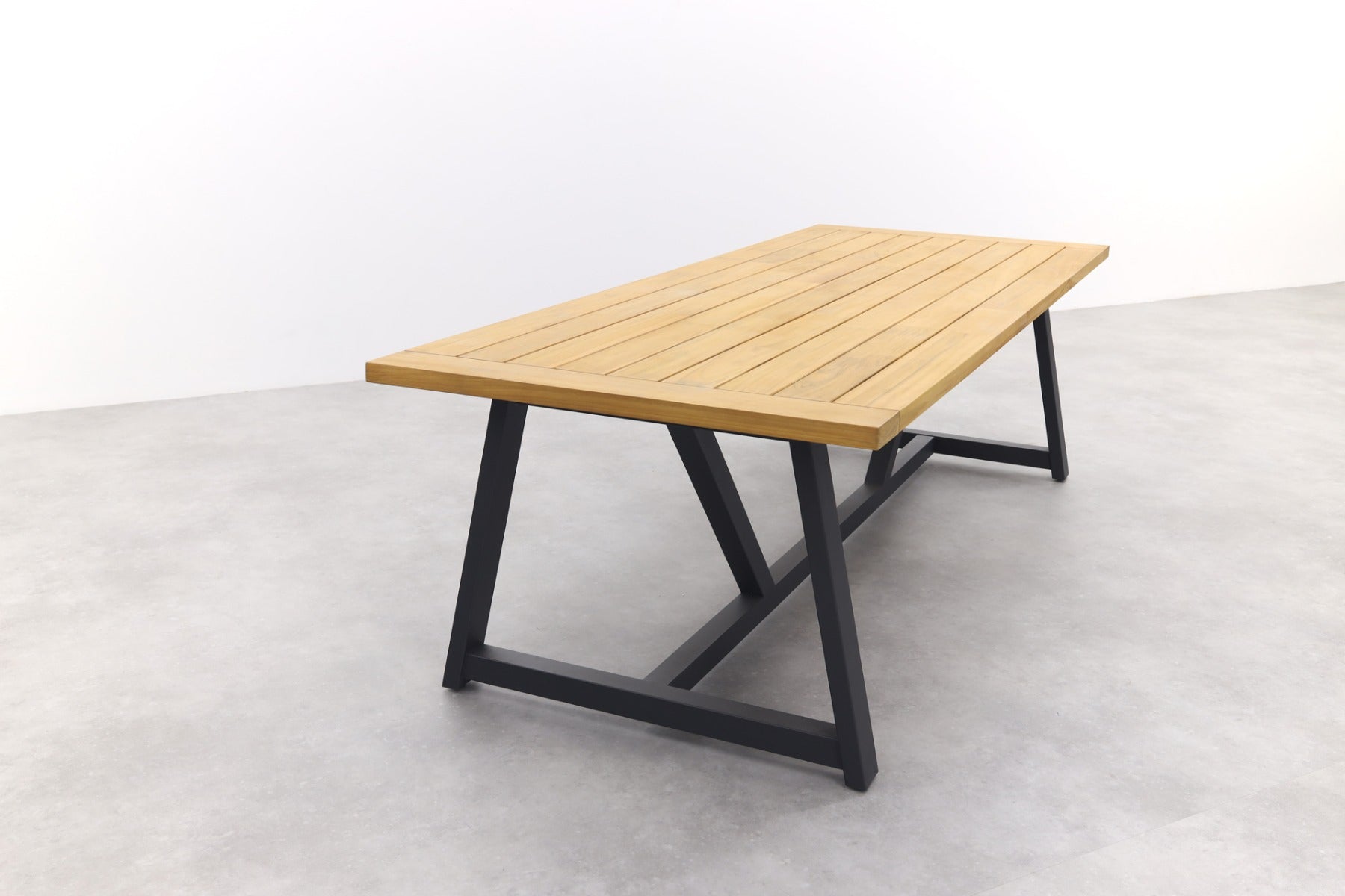 De Noah tuintafel is een prachtige combinatie van een frame van roestvrij staal (RVS) met een tafelblad van teakhout, wat zorgt voor een perfecte mix voor een industriële uitstraling. Het unieke ontwerp van het RVS frame maakt de tafel speciaal. Roestvrij staal (RVS) is een duurzaam materiaal dat bestand is tegen roest en verschillende weersomstandigheden. Teakhout is nature ook goed bestand tegen verschillende weersomstandigheden. Alleen, door blootstelling aan weer en wind zal teakhout na verloop van tijd van kleur veranderen, wat een normaal proces is voor dit type hout. Als je dit wilt voorkomen, kun je het hout behandelen met een teak protector. Het is echter niet nodig om teakhout af te dekken, omdat dit juist ongewenste vlekken in het hout kan veroorzaken.